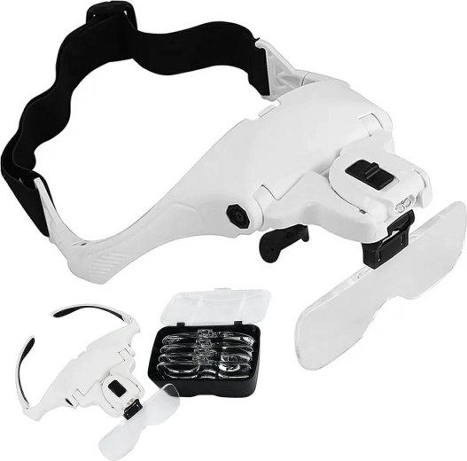 Praktikus, szemüveg formájú homloknagyító két LED-del a részletek fényes megvilágításához. 5 cserélhető lencsét kínál különböző nagyításokkal, valamint állítható szöget a megvilágításnál és a lencséknél egyaránt. Ideális órásoknak, elektronikával foglalkozóknak, modellezőknek és finom munkákhoz, ahol a pontosság alapvető.