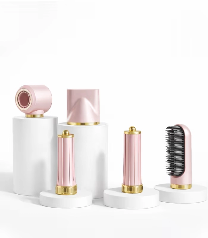 Rózsaszín multifunkciós hajszárító és styler 5 az 1-ben ionizációval, 3 hőfok