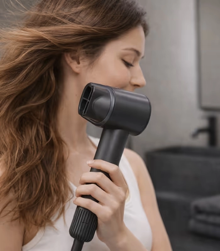 A percenként 100 000-es fordulatszámú motor erős és egyenletes légáramot hoz létre, amely lerövidíti a szárítás idejét és megkönnyíti a haj formázását.