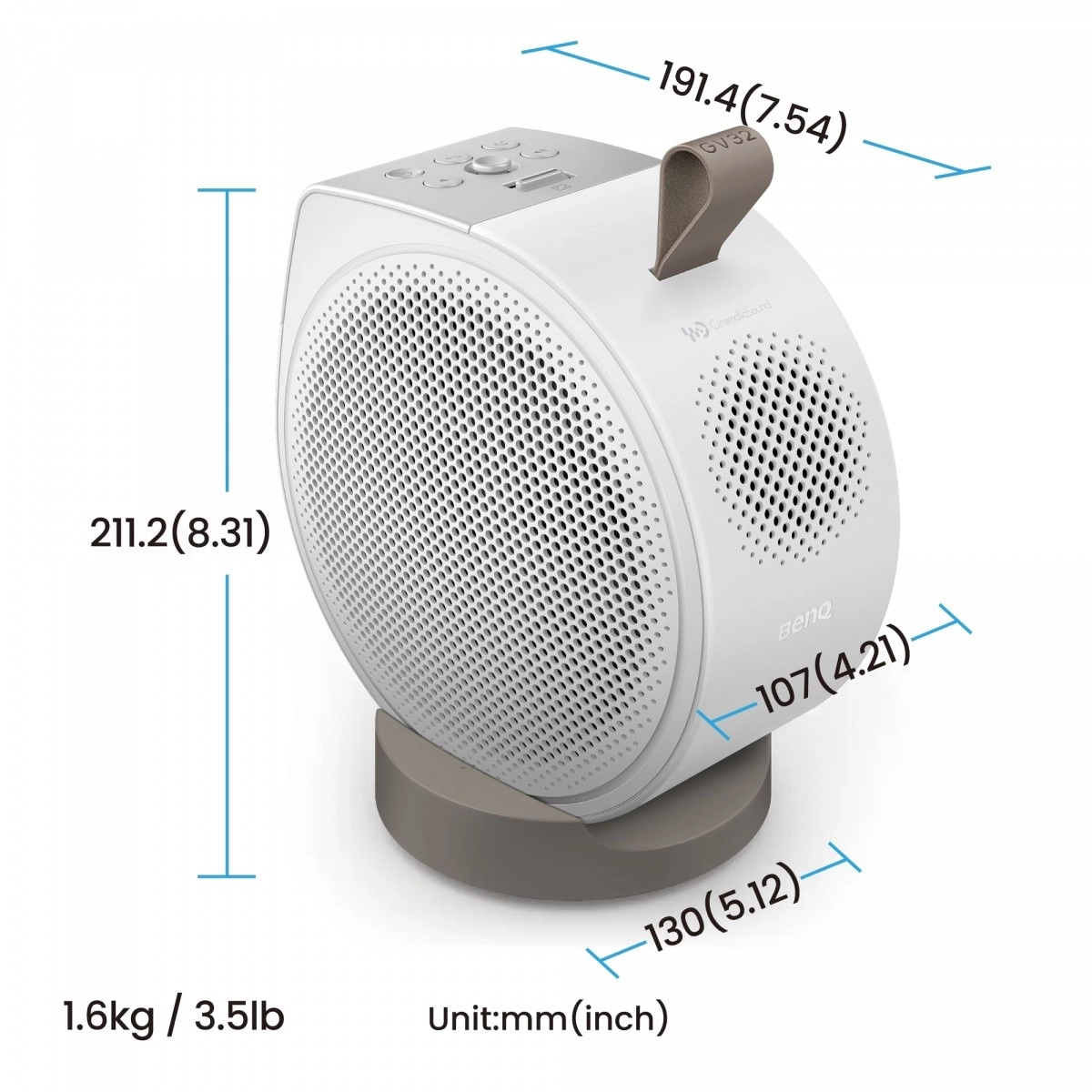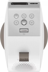 A BenQ GV32 stílusos és hordozható projektor, amely az éles Full HD (1920 × 1080) képet 2.1 csatornás, 18 W teljesítményű hangzással ötvözi. A DLP technológiának és a LED fényforrásnak köszönhetően stabil színeket, magas 100 000:1 kontrasztot és akár 30 000 óra üzemidőt nyújt ECO módban.