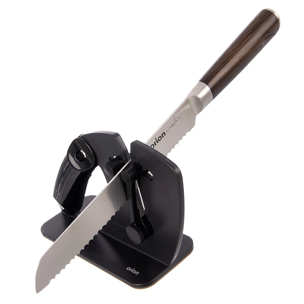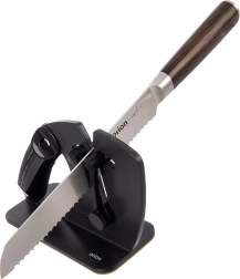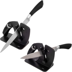 A rugós mechanizmus önállóan alkalmazkodik a pengéhez, és megtartja a megfelelő szöget a következetes, kíméletes élezéshez, legyen szó sima vagy fogazott késekről.