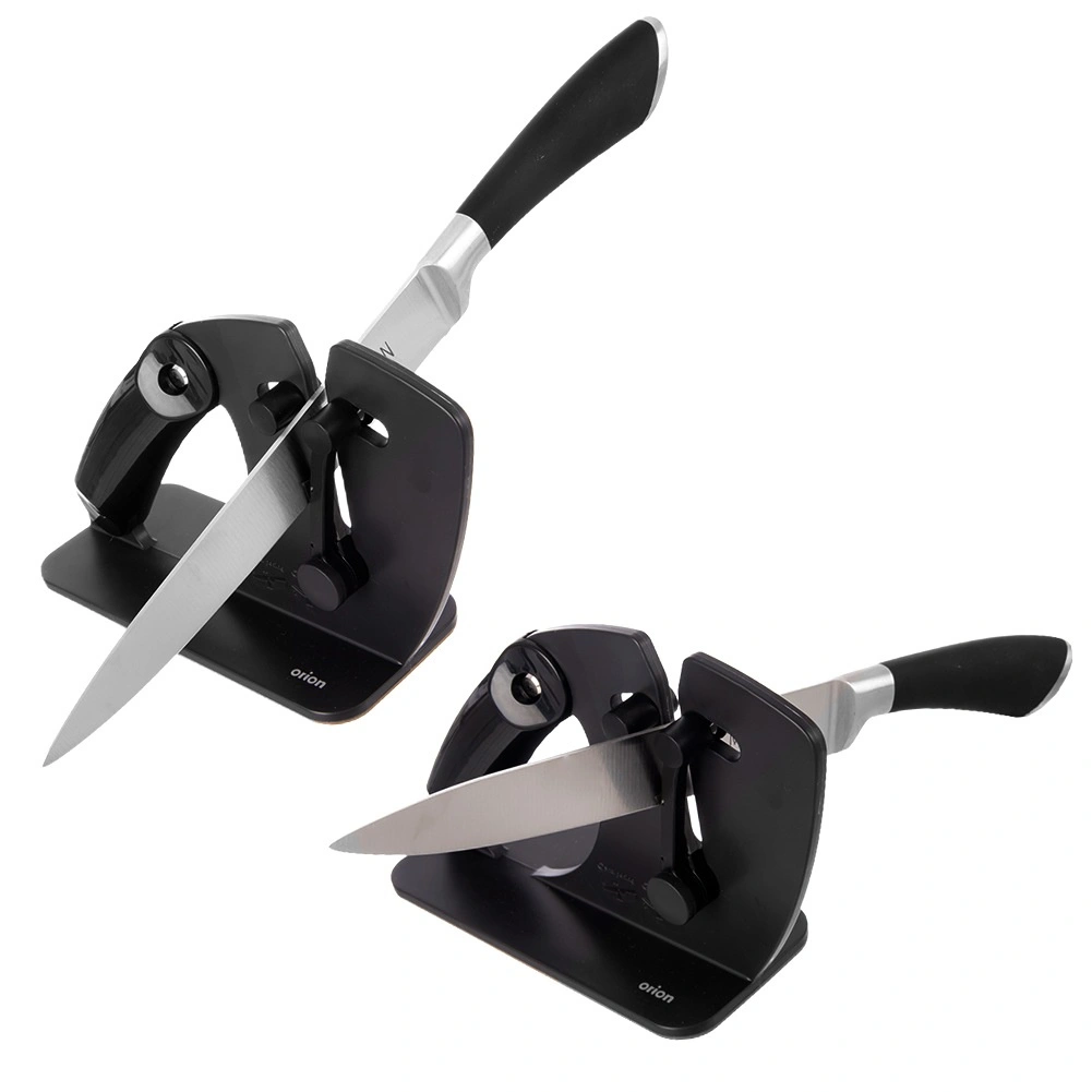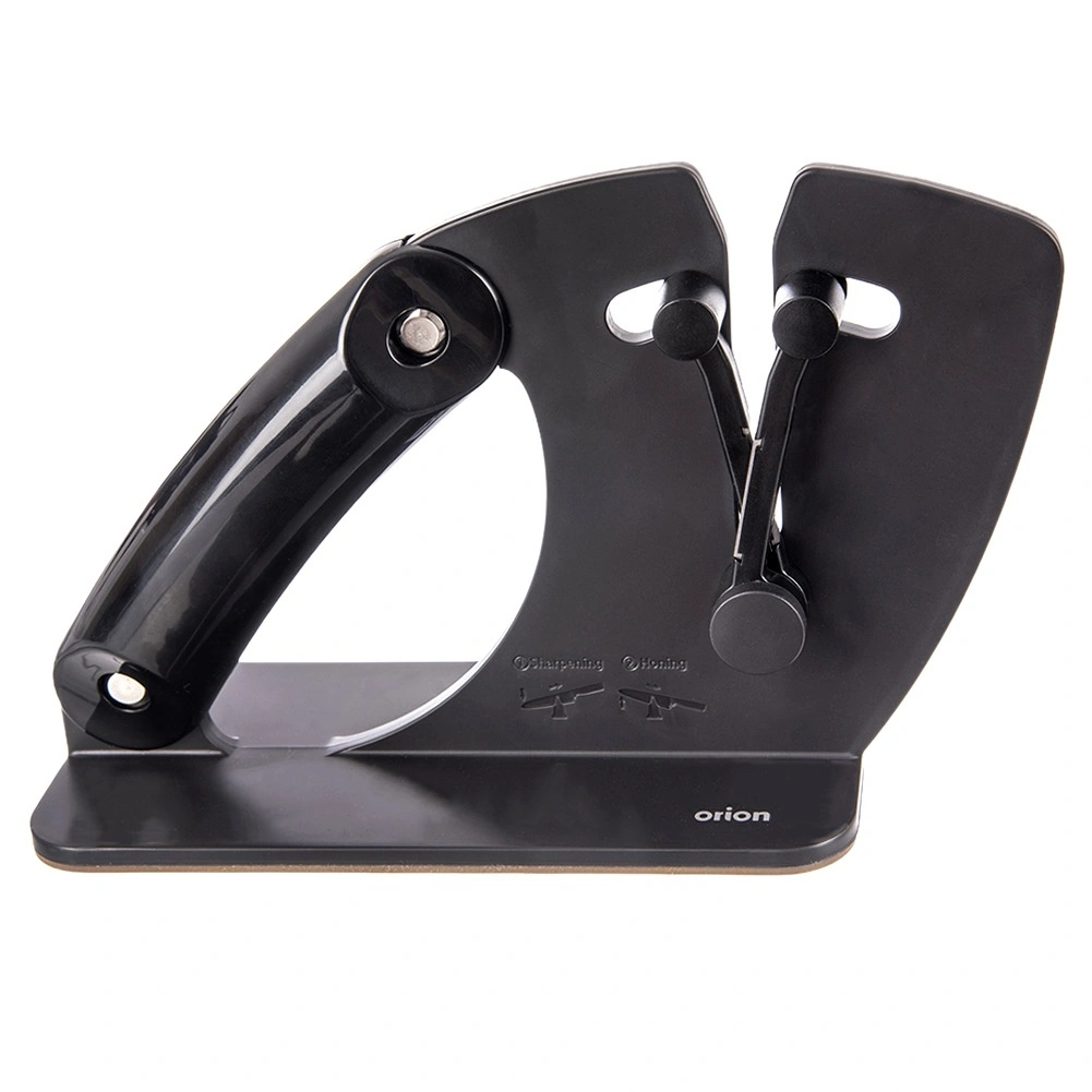 A két üzemmód teljes kontrollt ad: alapélezés a gyors élvisszaállításhoz és finom utóélezés/honolás az él simításához. A csúszásmentes szilikon talp és a nagy, ergonomikus markolat maximális stabilitást és biztonságot nyújt. A tartós karbid élezőelemek hosszú élettartamot és következetes eredményeket garantálnak.