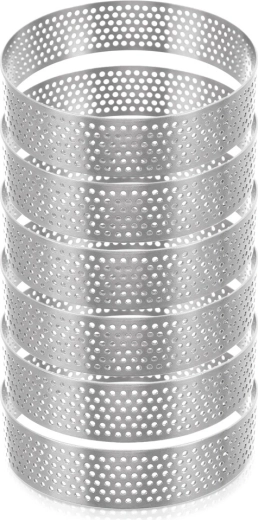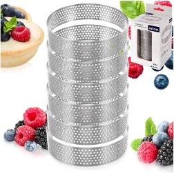 A gyűrűk tartós rozsdamentes acélból készülnek, amely jól bírja a magas hőmérsékletet és hosszú élettartamot garantál. Minden gyűrű átmérője 8 cm, magassága 2 cm – ideális méret elegáns mini desszertekhez, krémes vagy gyümölcsös tartalettákhoz, illetve sós pitékhez.