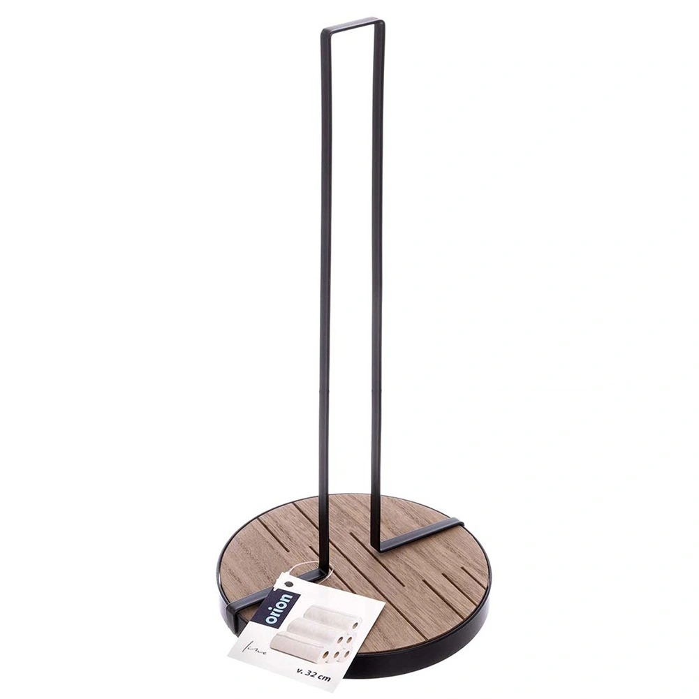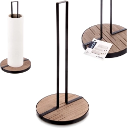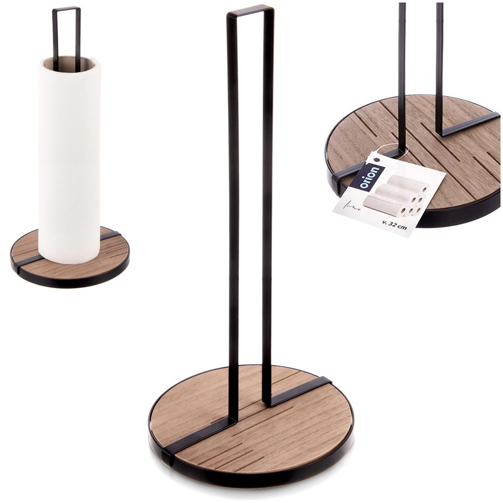 A LINE papírtörlő tartó 15,5 × 15,5 × 32,5 cm-es méretben praktikus segítőtárs a mindennapi főzéshez és takarításhoz. A masszív fekete színű fém szerkezet és a kör alakú MDF fa alap kiváló stabilitást és hosszú élettartamot biztosít.