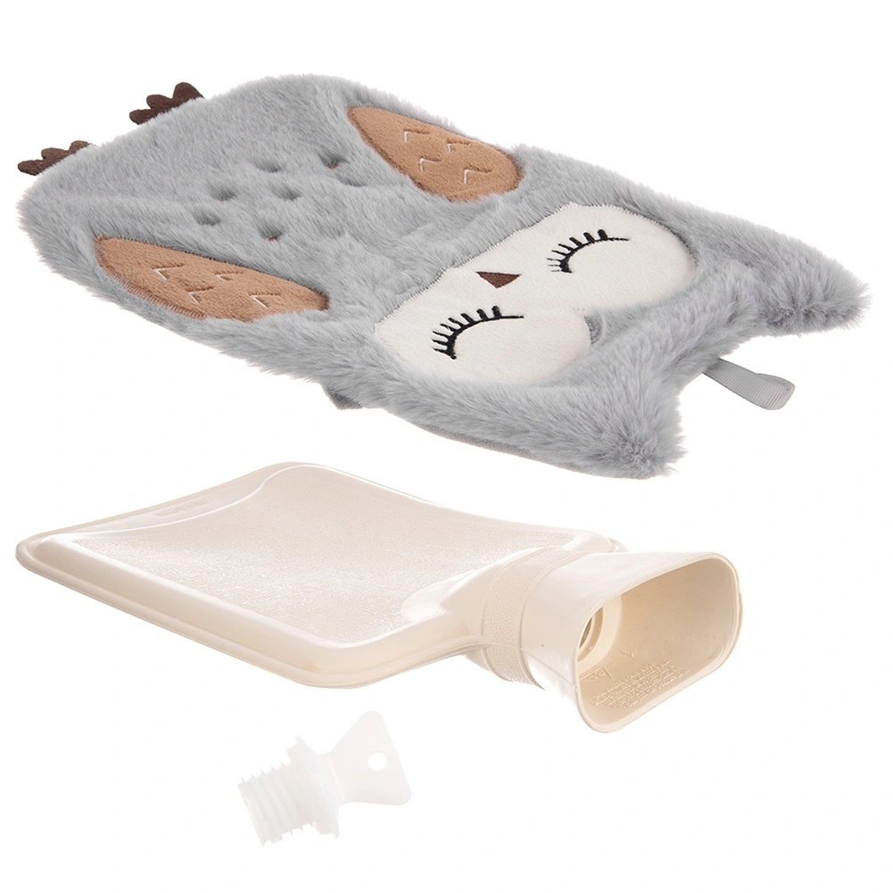 Aranyos, bagoly mintás termofor puha huzattal, amely gyors meleget és fájdalomcsillapítást nyújt. A 600 ml-es gumipalack szürke plüss borítással ideális a felmelegedéshez a hideg napokon, a has és a hát megnyugtatásához, valamint a kellemes relaxációhoz. A könnyen levehető huzatnak köszönhetően a használat biztonságos és kényelmes.