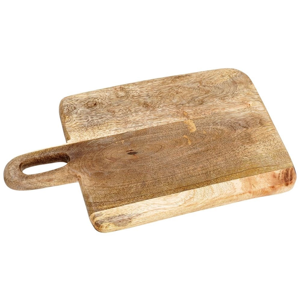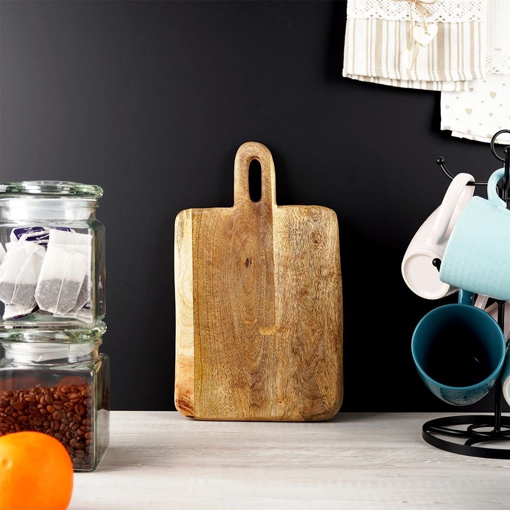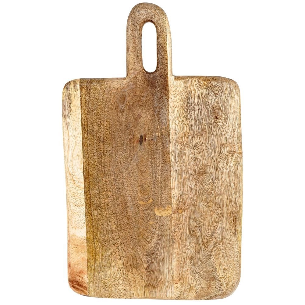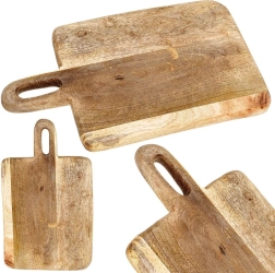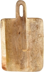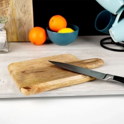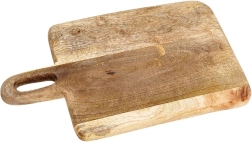 Stílusos mangófából készült deszka 33 × 20 × 2 cm méretben, ideális a mindennapi konyhai használatra. Masszív és tartós munkafelületet kínál hús, zöldség és gyümölcs vágásához, valamint sajtok, felvágottak és snackek tálalásához is. A praktikus fogantyúnak köszönhetően kényelmes a hordozás és az akasztás. A mangófa környezetbarát, élelmiszerrel érintkezésre biztonságos, gyorsan szárad és nem veszi át a szagokat. Rusztikus kivitele dekoratív megjelenést kölcsönöz a konyhának.