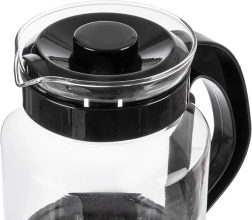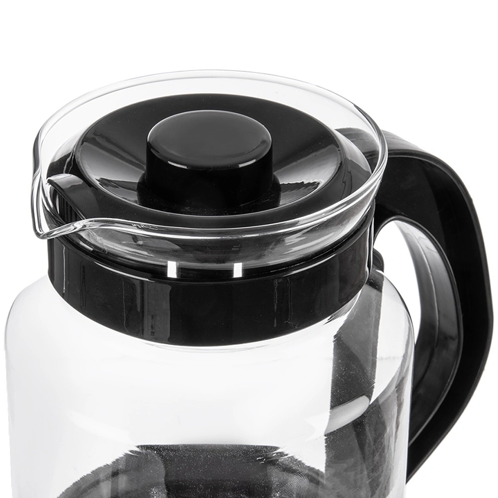 A kancsó boroszilikát üvegből készült, amely ellenáll a magas hőmérsékletnek, és kényelmes fekete műanyag fogantyúval és fedéllel van kiegészítve. Az átgondolt kiöntőnek köszönhetően az öntés egyenletes és csöpögésmentes, az ergonomikus fogantyú pedig biztos fogást nyújt égési sérülés kockázata nélkül.