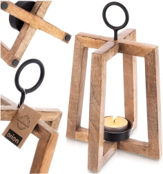 A nyitott keretes, design gyertyatartó a mangófa meleg tónusával és erezetével tűnik ki. Remekül illik modern, skandináv és rusztikus enteriőrökbe, és a fém gyűrűnek köszönhetően könnyedén felakasztható a bejáratnál, az erkélyen vagy a teraszon.