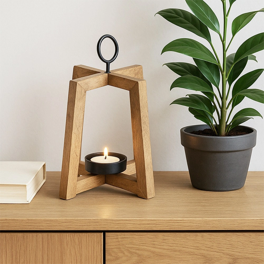 A gyertyatartó teste mangófából készült, karakteres erezettel és meleg árnyalattal, amely azonnal otthonossá teszi bármelyik helyiséget.
