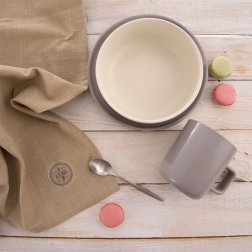 Fedezze fel a megbízható konyharuhákat, amelyek bírják a mindennapos használatot. A természetes 100% pamut gyorsan elnyeli a nedvességet, kellemes tapintású és könnyen tisztán tartható, 40 °C-ig mosható. A semleges barna szín és a visszafogott címke tiszta, időtálló stílust kölcsönöz konyhájának.