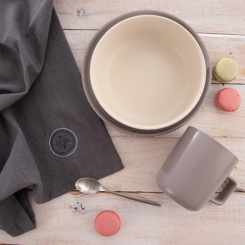 Fedezze fel a megbízható konyharuhákat, amelyek bírják konyhája mindennapos terhelését. A 100% pamutnak köszönhetően gyorsan felszívják a nedvességet, könnyen tisztán tarthatók, a szürke árnyalat pedig illik a modern és klasszikus enteriőrökhöz is. A konyharuhákat a „My Kitchen” feliratú, visszafogott felvarró és a praktikus szegés díszíti a hosszabb élettartam érdekében.