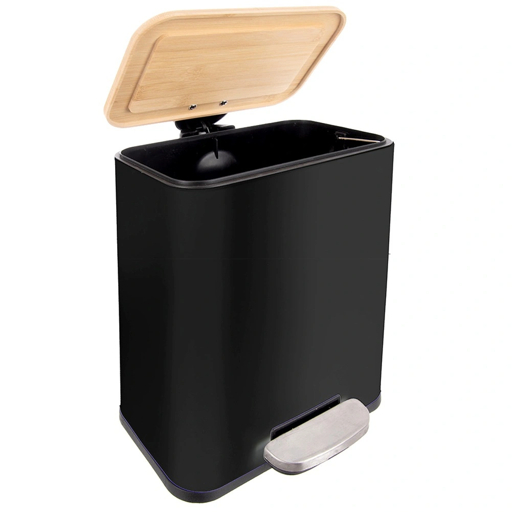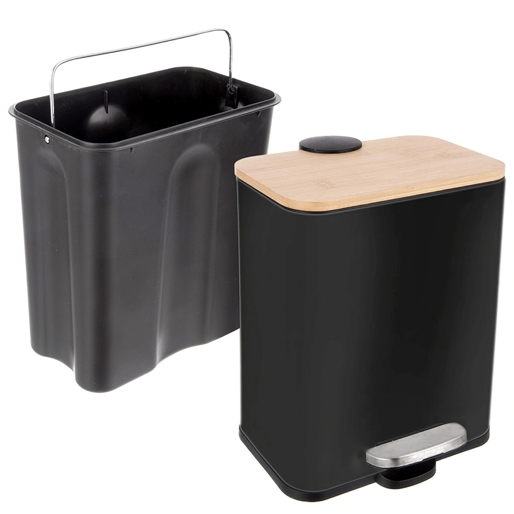 Ez a keskeny pedálos szemetes a modern dizájnt és a praktikusságot ötvözi. A fekete acéltest bambusz fedéllel sokféle enteriőrbe illeszkedik, míg a pedál érintésmentes és higiénikus nyitást tesz lehetővé. Az 5 l űrtartalom ideális fürdőszobába, kisebb konyhákba vagy irodákba.