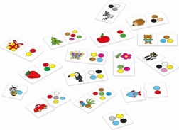 A játék 24 páros deszkát tartalmaz, ahol az egyik rész egy képet, a másik rész színes köröket mutat. A feladat az, hogy összepárosítsuk azokat a kártyákat, amelyek azonos színeket tartalmaznak a képeken és a körökön. A sikeres párosítást hullámos vonal jelzi.