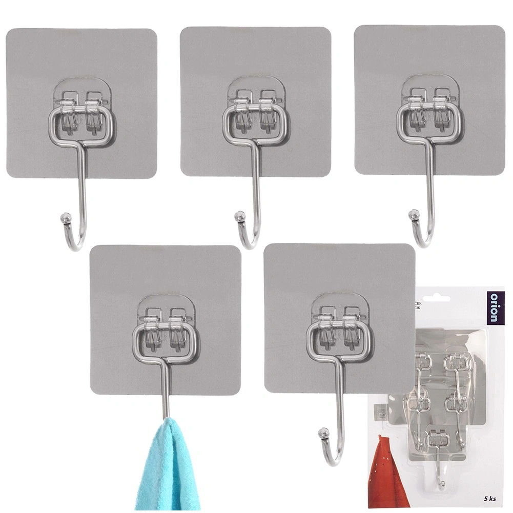 Praktikus, öntapadó kampók öt darabból álló készlete minden háztartásba. A erős tapadásnak köszönhetően szilárdan rögzülnek a sima felületeken fúrás nélkül. Tartós rozsdamentes acélból készültek, konyhába és fürdőszobába egyaránt ideálisak törölközőkhöz, konyharuhákhoz, köntösökhöz vagy kulcsokhoz. Egyszerű telepítés – zsírtalanítani, rányomni és kész.