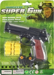 Könnyű és biztonságos műanyag pisztoly gumilövedékekkel gyerekeknek, rengeteg szórakozással és pontossági gyakorlással. A csomagban pisztoly, 12 gumilövedék és 2, figurák formájú céltábla található. Ideális otthoni versenyekhez és a koordináció fejlesztéséhez. Biztonságos lövészet, egyszerű kezelés és komplett szett az azonnali játékhoz.