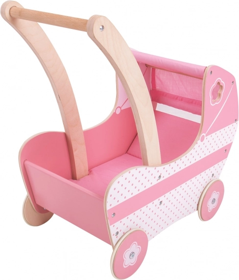 Ez a gyönyörű rózsaszín babakocsi szövet napernyővel és dekoratív, faragott részletekkel van ellátva, amelyek minden kisleány örömére szolgálnak. A játék segíti a kreativitás és a szociális készségek fejlesztését.