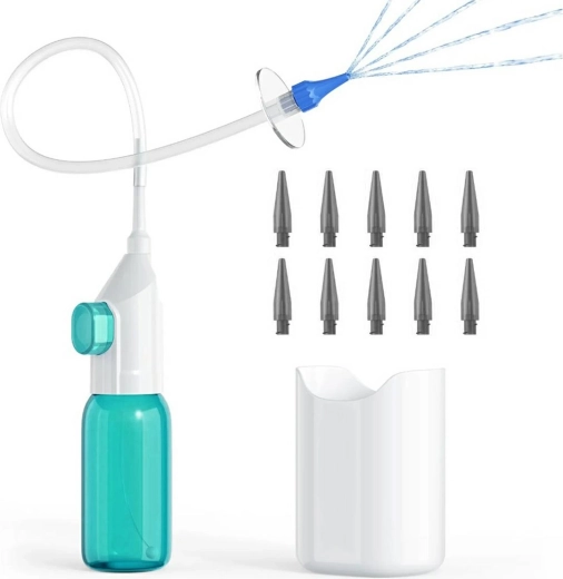 A szett tartalmaz mindent, amire a higiénikus használathoz szükség van – eldobható feltéteket több felhasználó számára, valamint egy praktikus edényt a használt víz felfogására. Kompakt méreteinek köszönhetően az irrigátor ideális otthoni használatra és utazáshoz is.