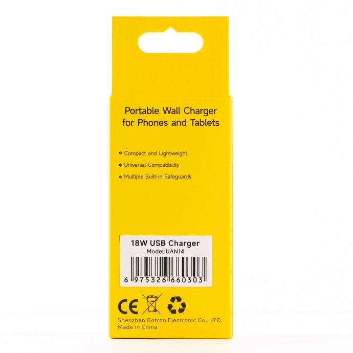 Ez a könnyű és praktikus USB hálózati adapter 18 W teljesítménnyel ideális Ulefone telefonokhoz és tabletekhez, beleértve az ARMOR és TAB sorozatot is. Gyors és hatékony töltést kínál a 9 V/2 A és 12 V/1,5 A feszültségprofillal, így kevesebb időt tölthet a konnektor mellett.