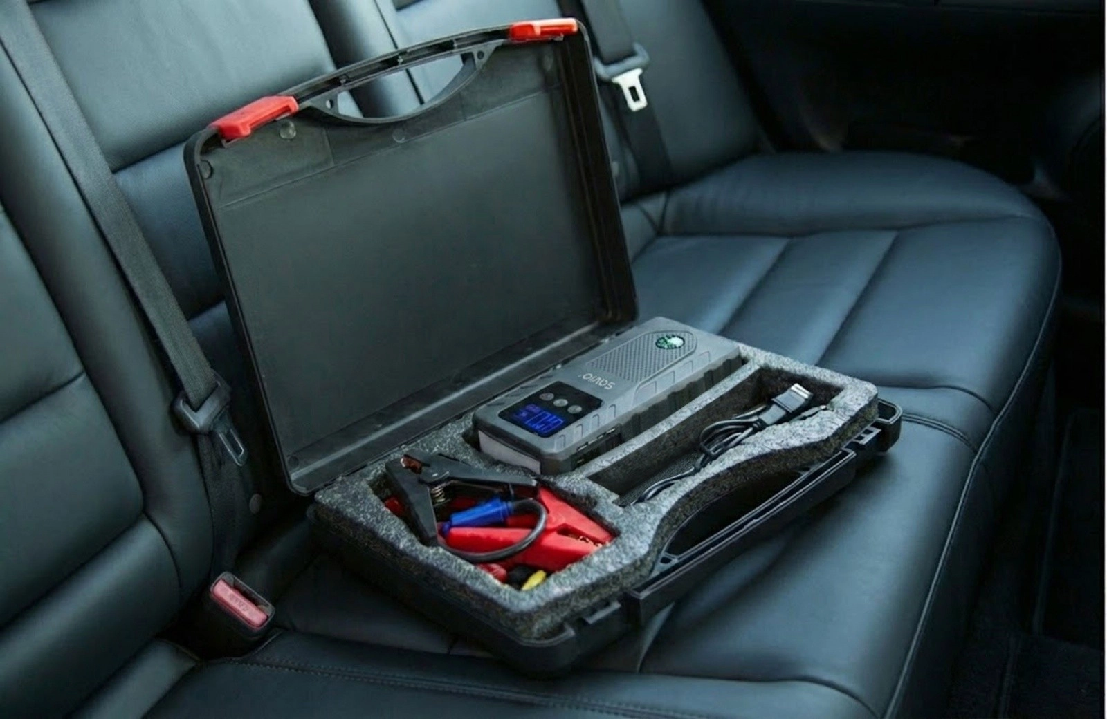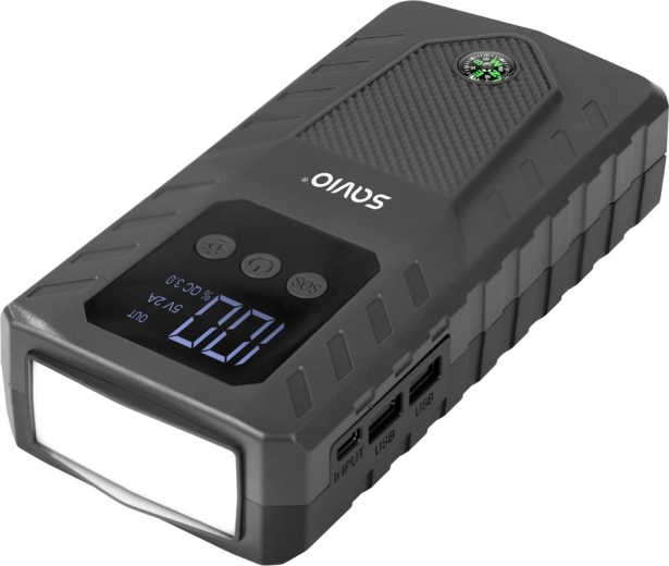 A beépített 10 000 mAh-s powerbank két USB-A porttal (5 V/1 A és 5 V/2 A) gyorsan tölti a telefont, táblagépet vagy navigációt. Az indítás biztonságáról a Smart Clamp okos csipeszek gondoskodnak, pólusfelcserélés és rövidzárlat elleni védelemmel. Nem hiányzik a LED lámpa, a iránytű és a strapabíró kivitel a megterhelő körülményekhez.