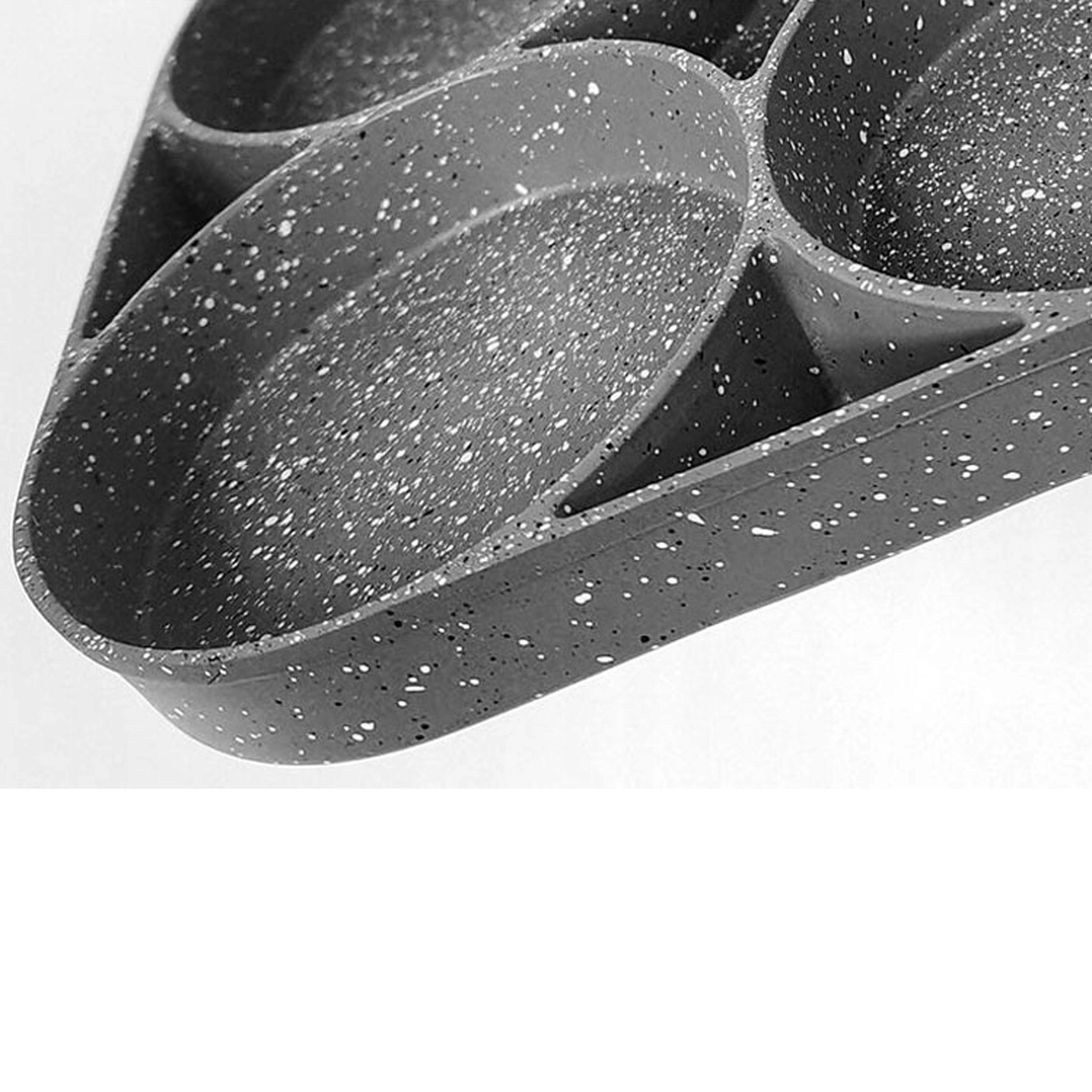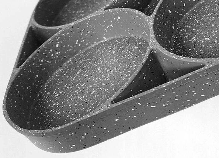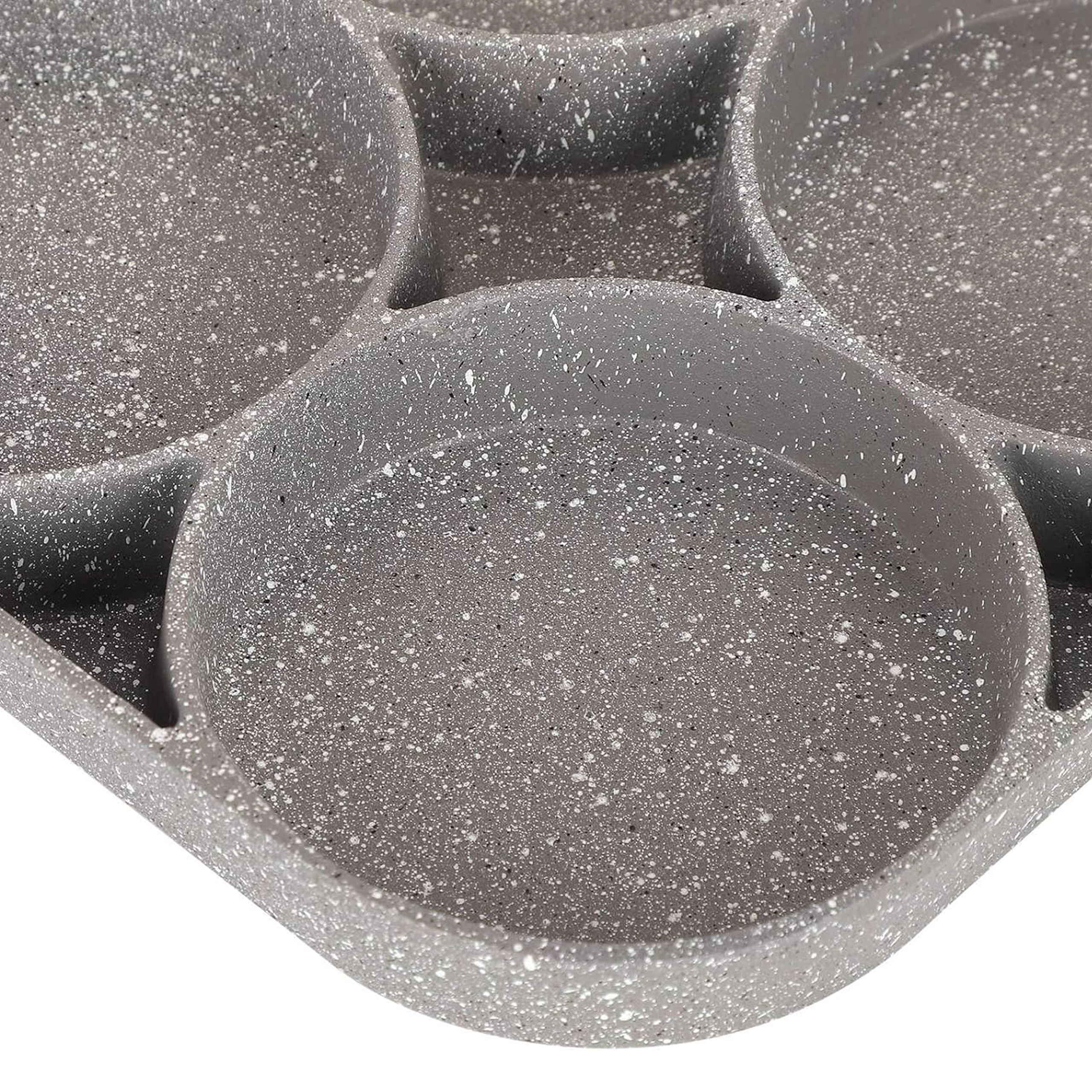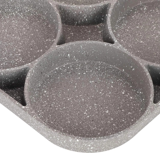 Ez a négyrészes serpenyő ideális a gyors és kiegyensúlyozott reggelikhez és uzsonnákhoz. A különálló rekeszek szépen kerek és egyenletes adagokat tartanak, míg a pettyezett tapadásmentes felület könnyű fordítást, odaégés nélküli sütést és egyszerű tisztítást biztosít.