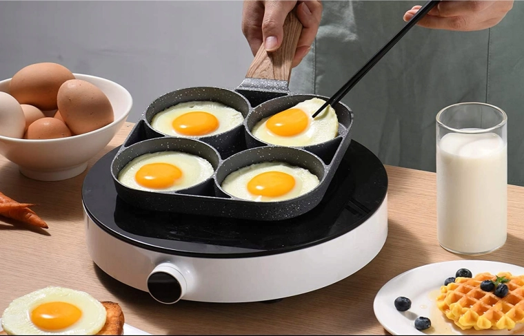 A különálló kerek rekeszek ideális formában tartják a tojást vagy a palacsintát, és lerövidítik egy teljes reggeli elkészítési idejét.