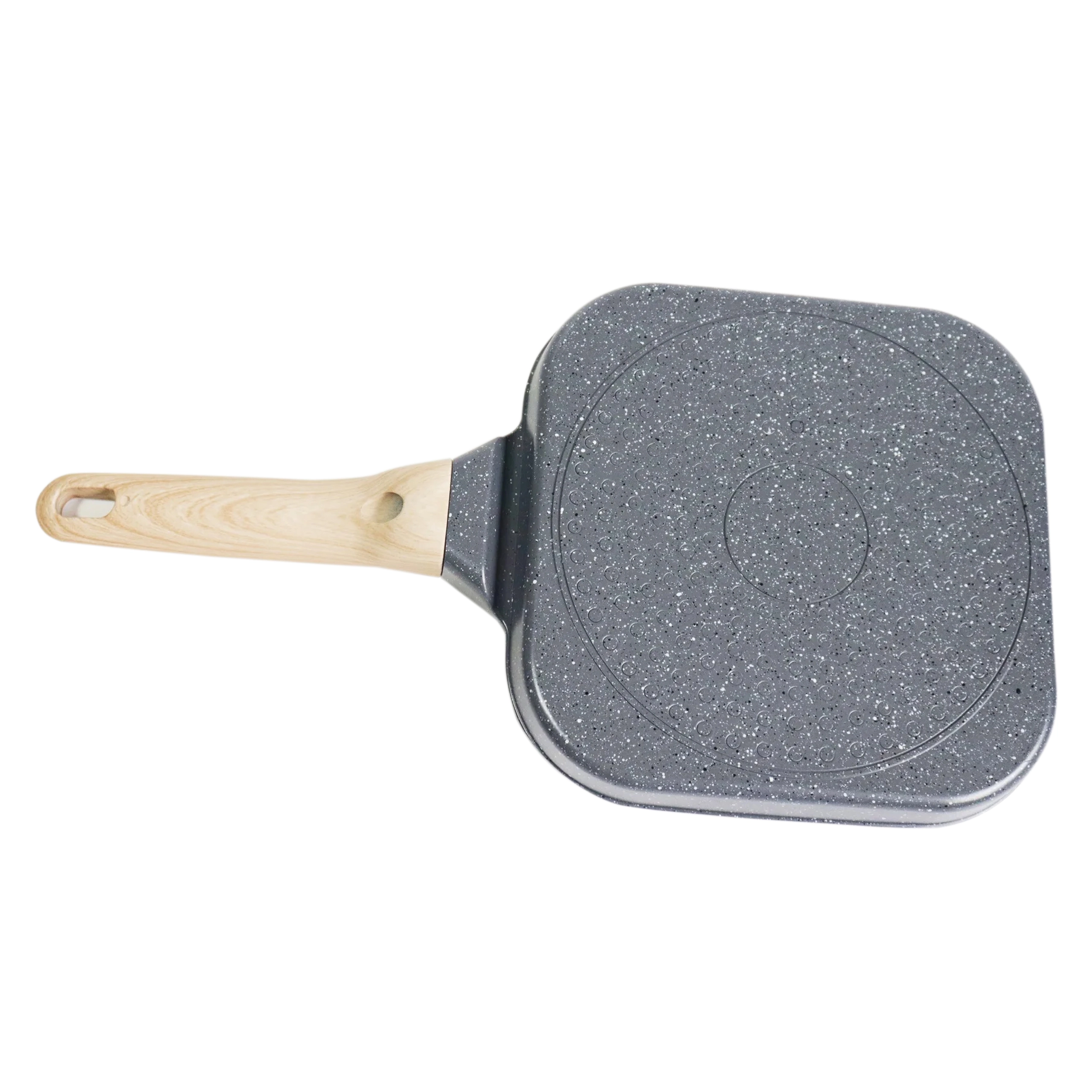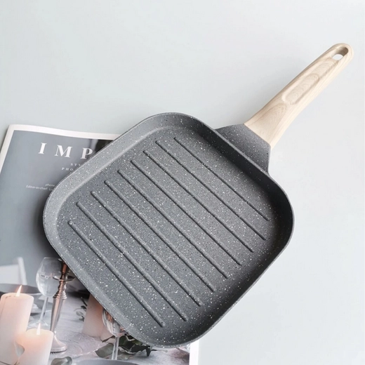Ez a sokoldalú grillserpenyő ideális steakhez, halhoz és zöldségekhez. A masszív, négyzetes forma nagy sütőfelületet kínál, míg a megemelt bordázat intenzív hőkontaktust és szép grillcsíkokat biztosít. A tapadásmentes felület kevesebb olajjal való főzést tesz lehetővé és megkönnyíti a karbantartást.