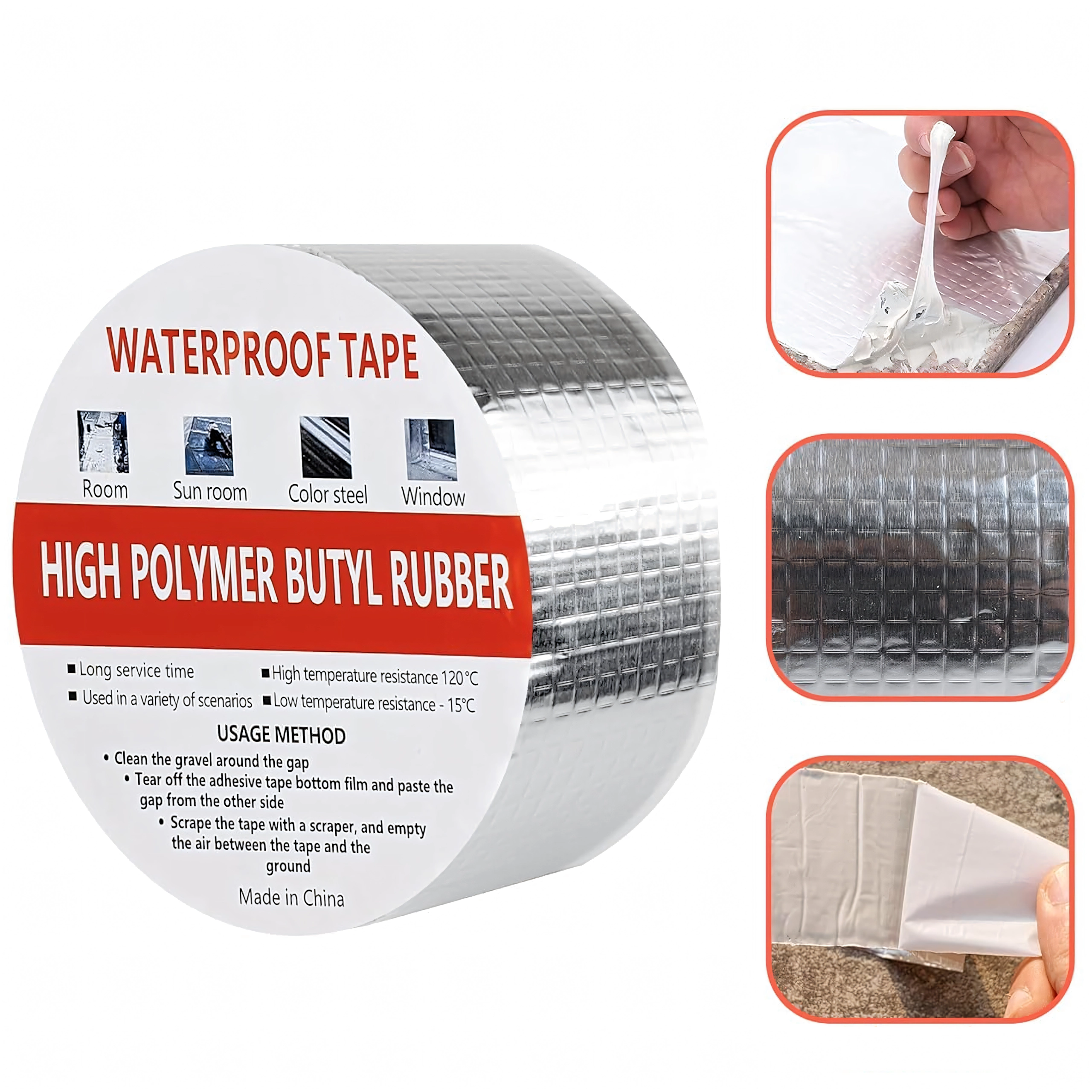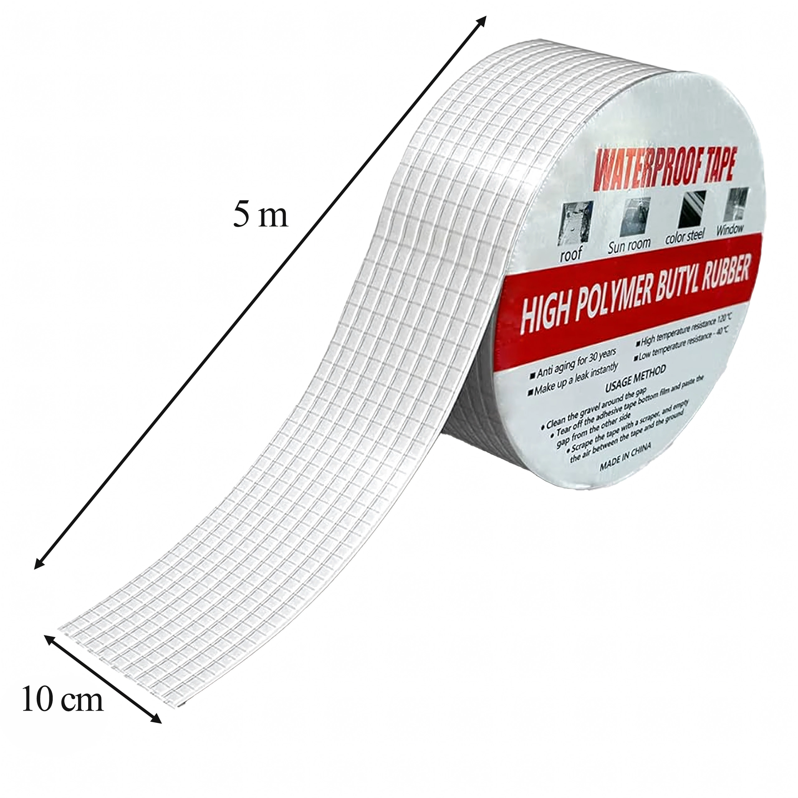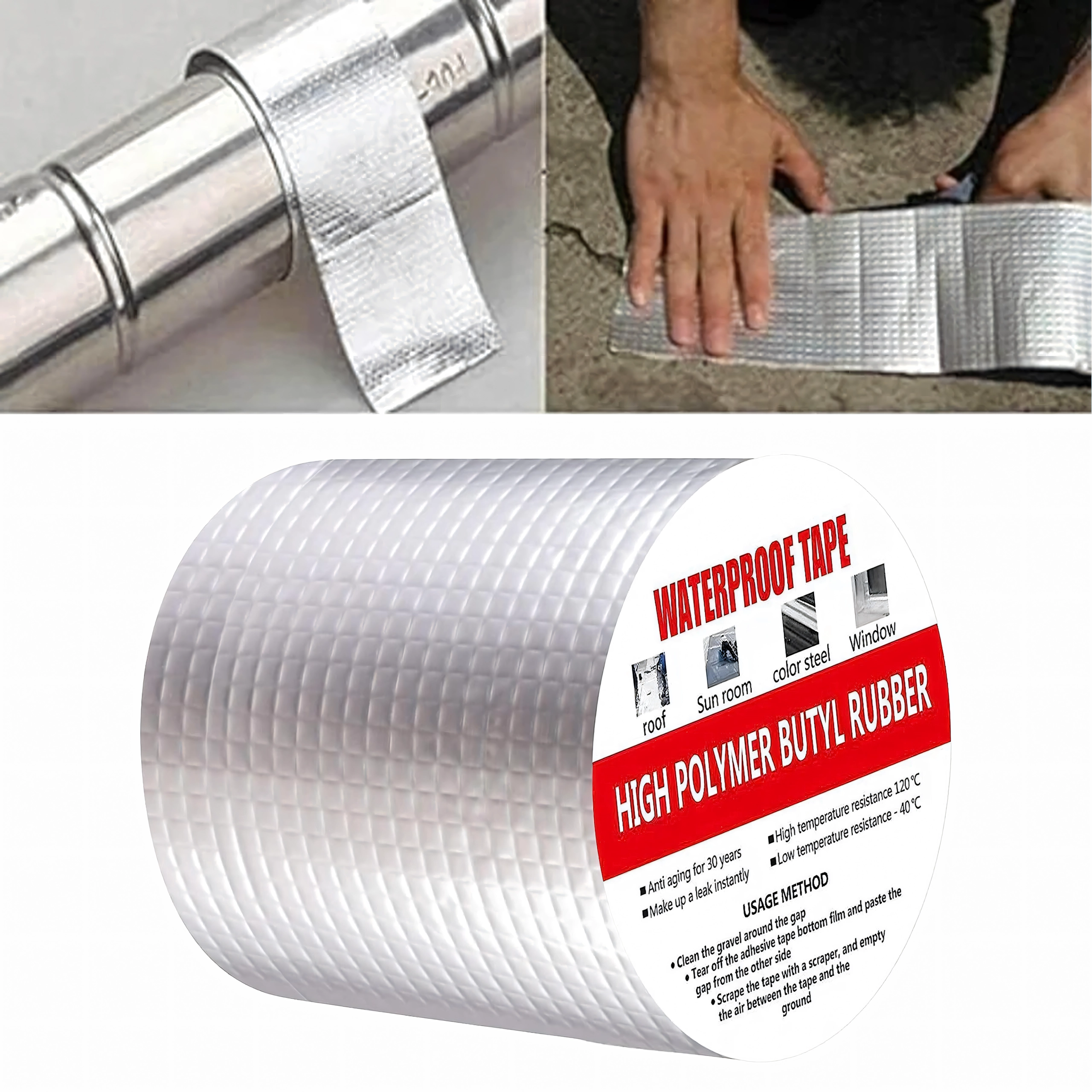 Kiválóan használható tetőkön, kéményeken, ablakokon, csővezetékeken, lakókocsikon, fémszerkezeteken és mindenhol, ahol gyors és tartós tömítés szükséges. Az alumínium réteg növeli az UV-, hő- és időjárás-állóságot, míg a butil mag hosszú távú rugalmasságot és tömítettséget biztosít.