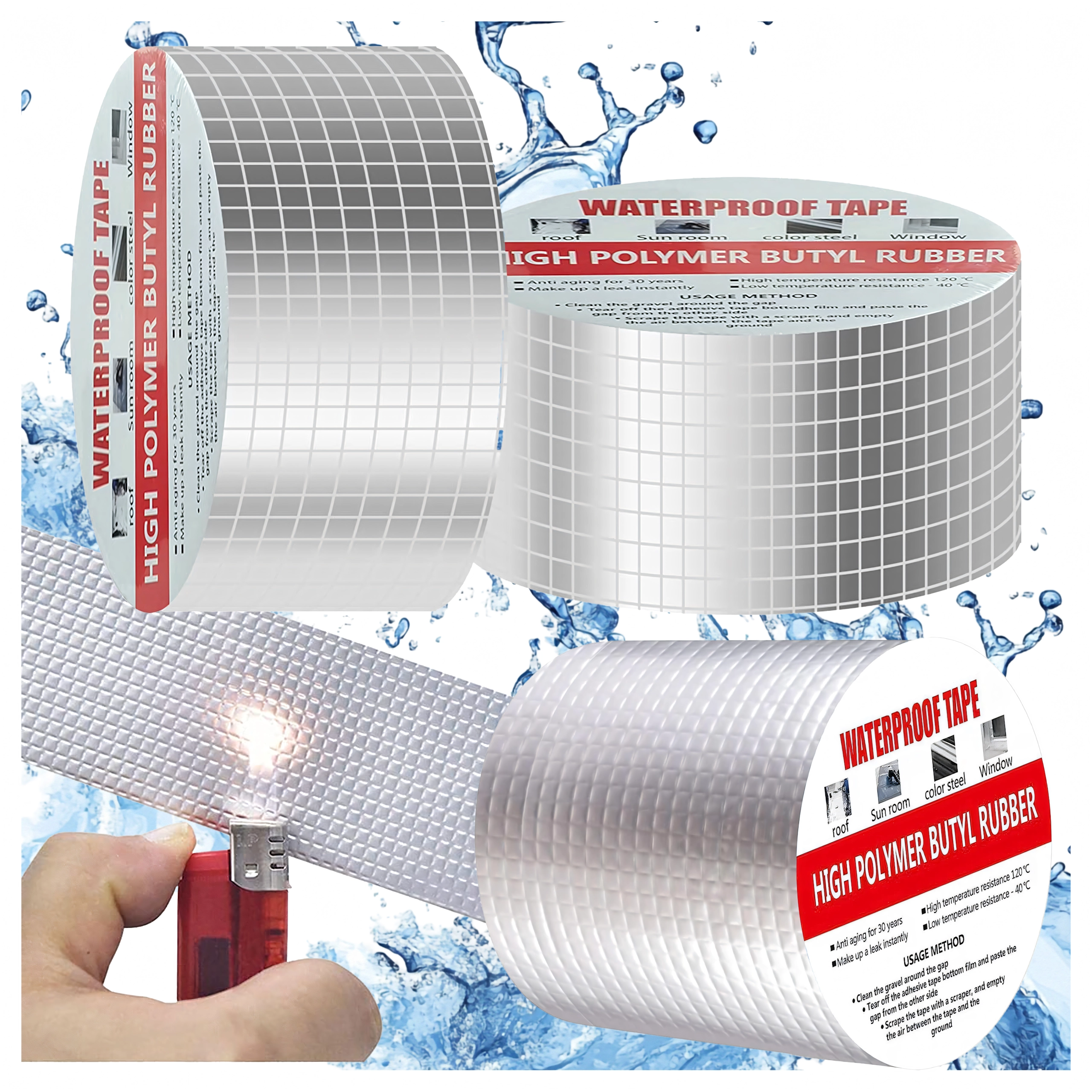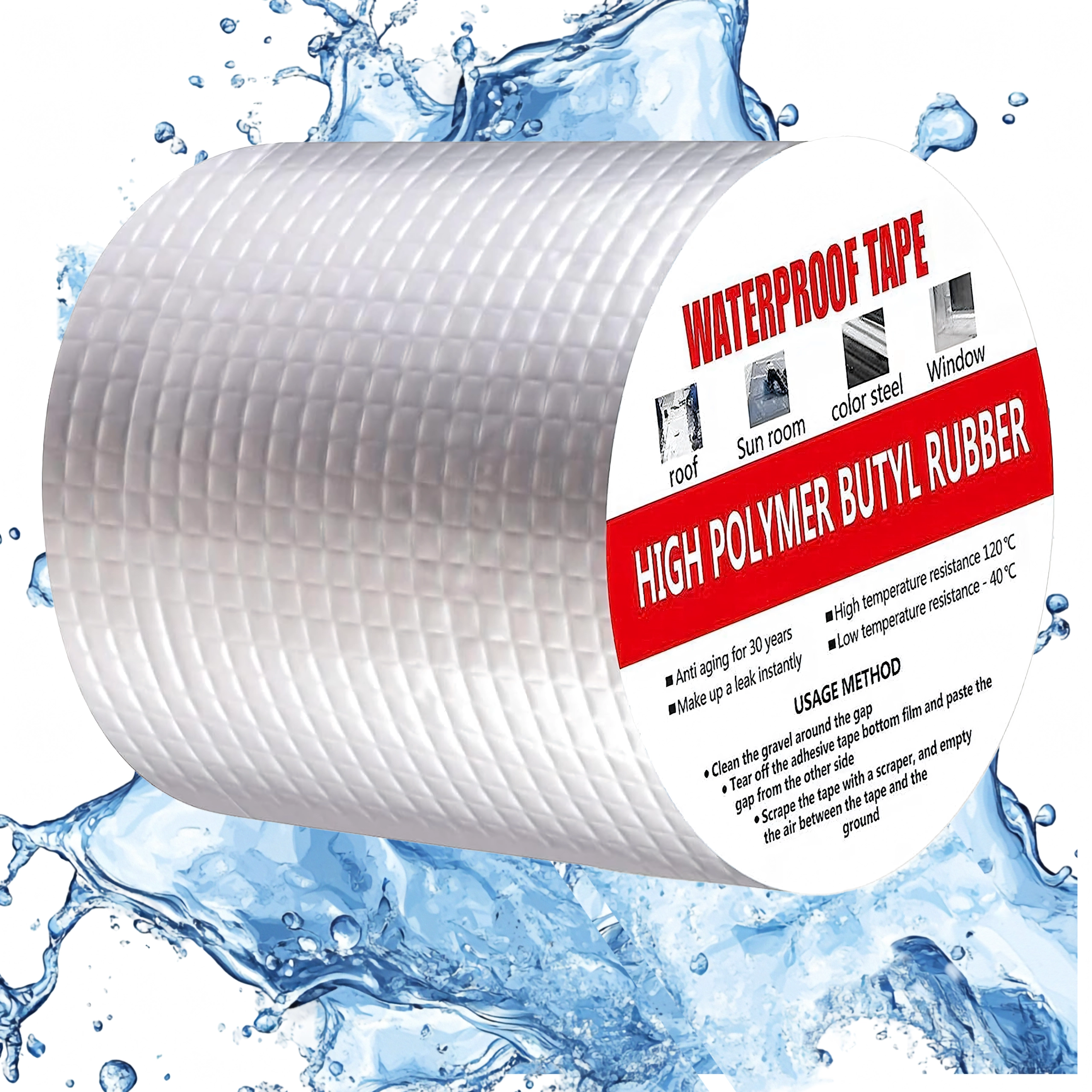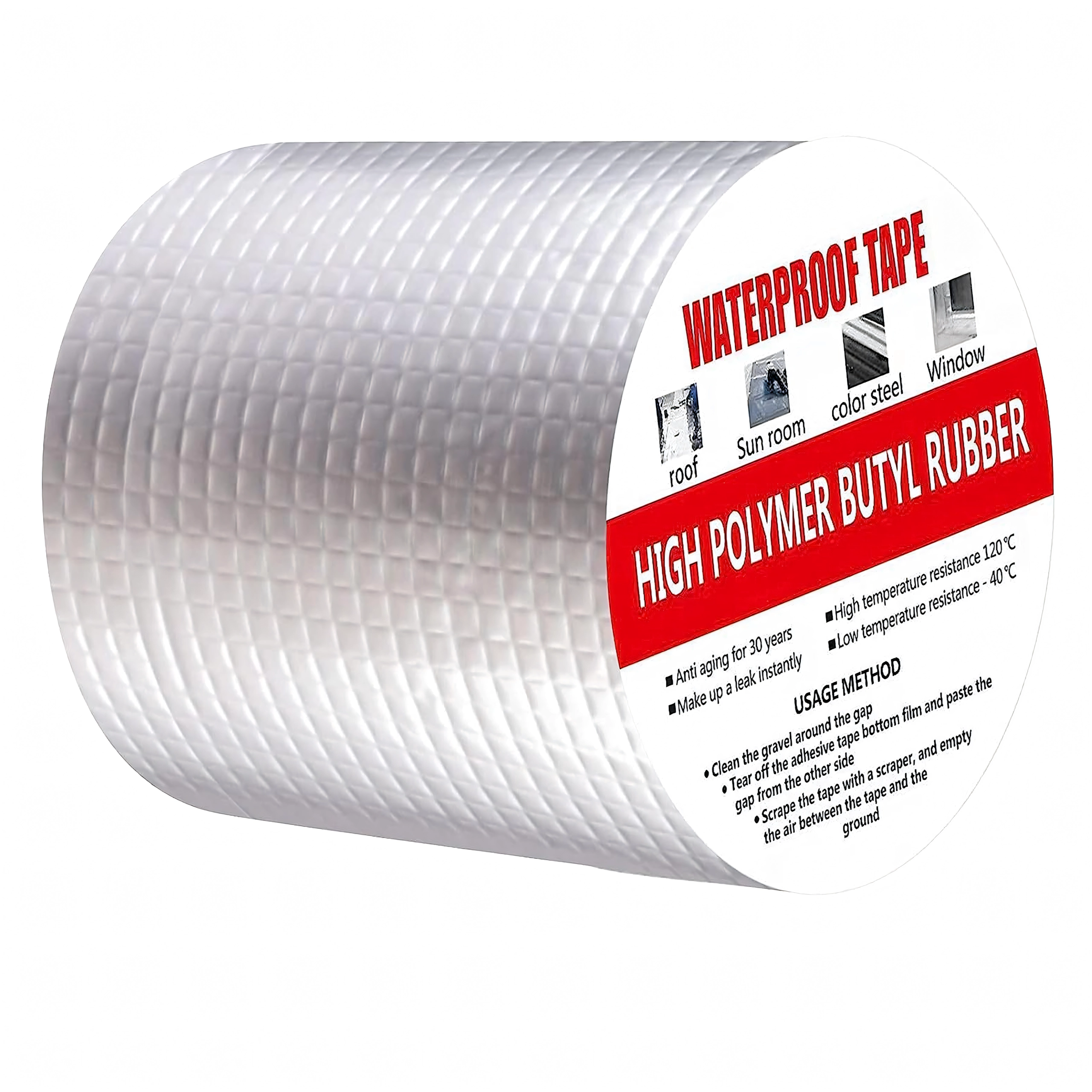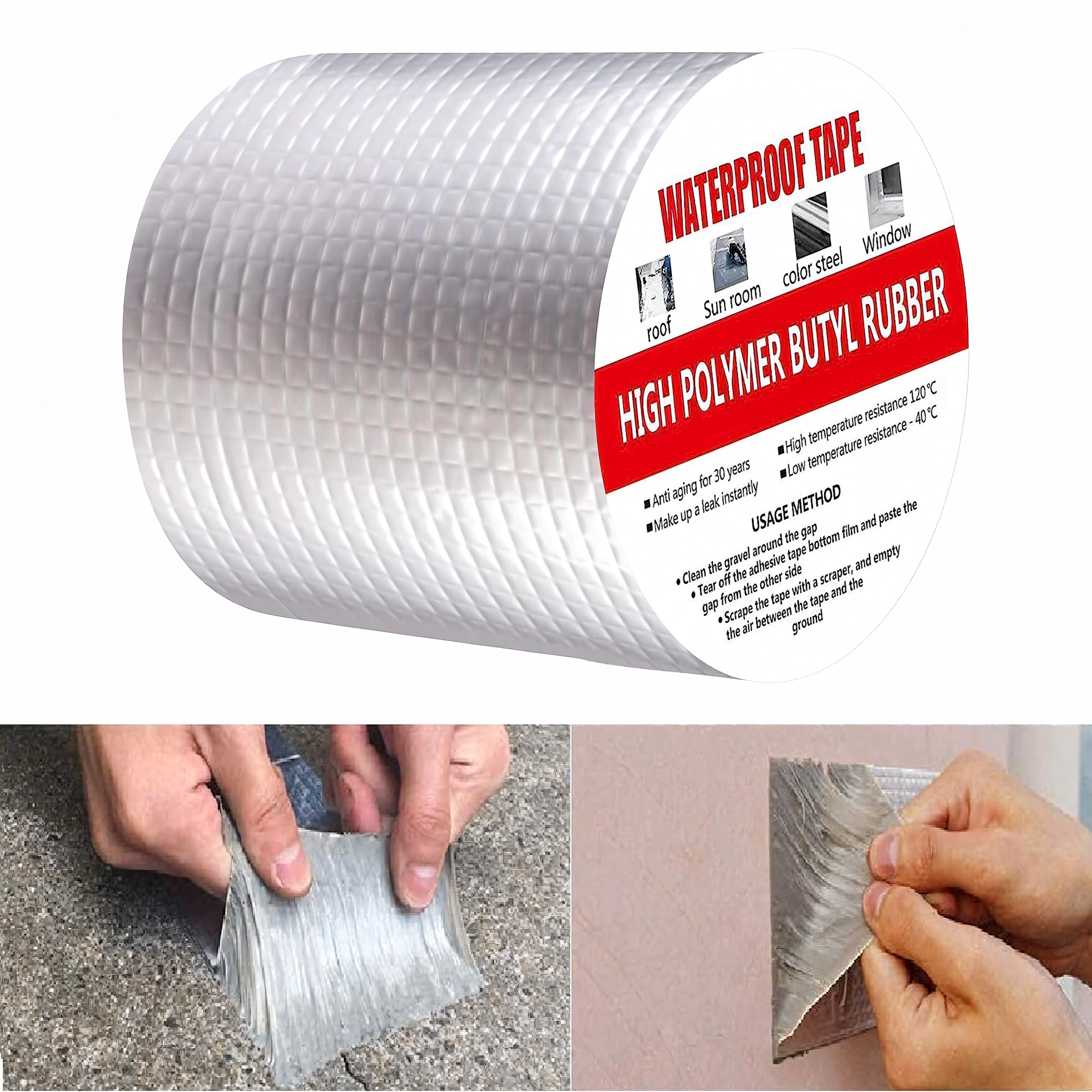 Kiválóan használható tetőkön, kéményeken, ablakokon, csővezetékeken, lakókocsikon, fémszerkezeteken és mindenhol, ahol gyors és tartós tömítés szükséges. Az alumínium réteg növeli az UV-, hő- és időjárás-állóságot, míg a butil mag hosszú távú rugalmasságot és tömítettséget biztosít.