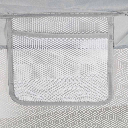 A hálós oldalfalak javítják a rálátást a gyermekre és kiváló szellőzést biztosítanak. A felső peremek puha párnázása növeli a biztonságot.