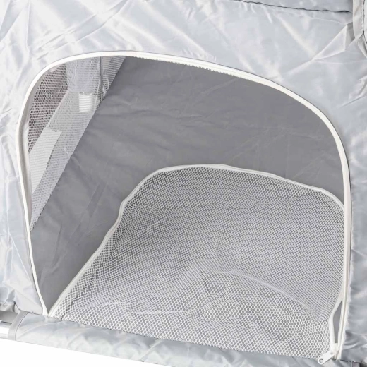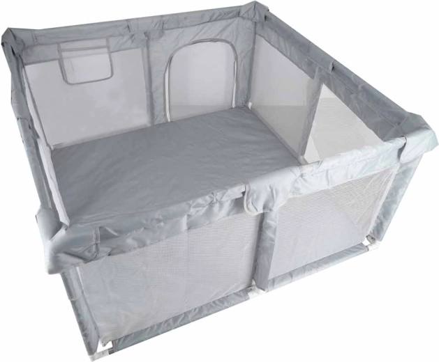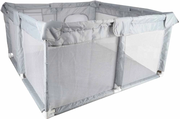 A 120 × 120 cm méretű praktikus gyermek járóka biztonságos és tágas helyet teremt játékra és pihenésre. A hálós falaknak köszönhetően a baba mindig szem előtt van, a cipzáras bejárat megkönnyíti a hozzáférést, a szerszám nélküli, egyszerű összeszerelés pedig időt takarít meg. A stabilitást tappancsos csatlakozók biztosítják, a puha textil szegélyek pedig növelik a biztonságot és a kényelmet.
