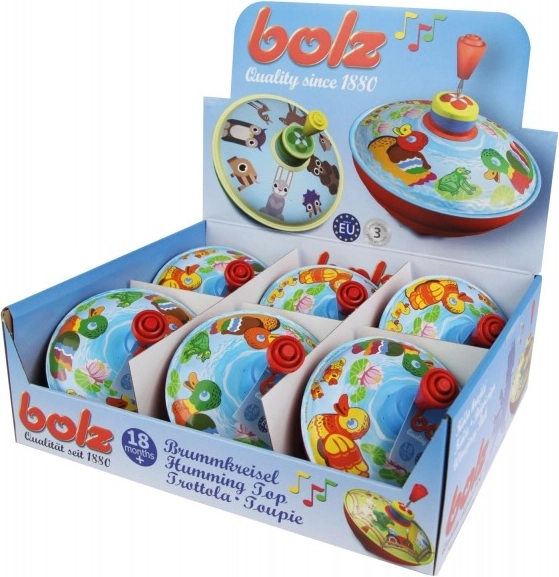Ez a hagyományos, paraszti udvar motívummal díszített pörgettyű ideális játék a legkisebbek számára. Az egyszerű, lenyomható kar mechanizmusa megforgatja a pörgettyűt, amely forgás közben jellegzetes hangot ad és vizuális ingereket biztosít.