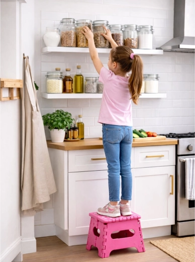 Ideális gyerekeknek a mosdónál, a magasabb polcok könnyebb eléréséhez a konyhában vagy gardróbban, segédülésként, illetve praktikus kiegészítőként kempingezéshez és utazáshoz. Minimalista dizájnja és kompakt méretei bármely enteriőrbe illenek.