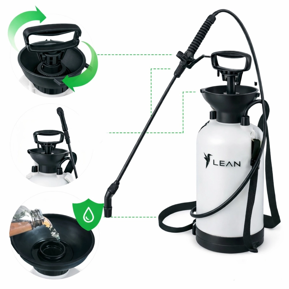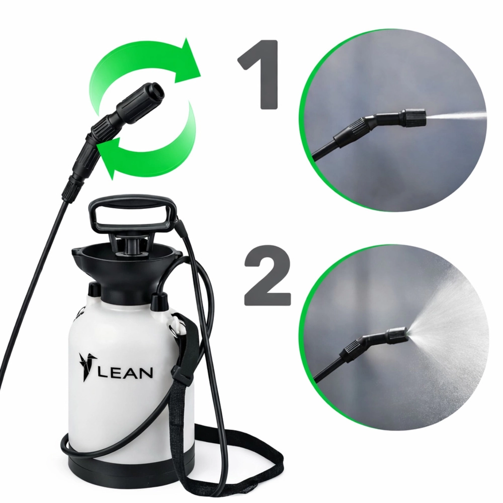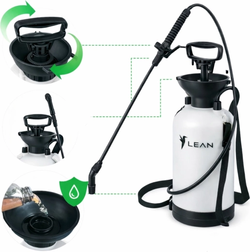 A 5 literes LEAN kézi nyomáspermetező megbízható segítség a növényápoláshoz a kertben, erkélyen és üvegházban. A kézi pumparendszerrel gyorsan létrehozható a szükséges nyomás, míg a szabályozható fúvóka lehetővé teszi a finom köd és a pontos pontsugár közötti váltást a célzott alkalmazáshoz.