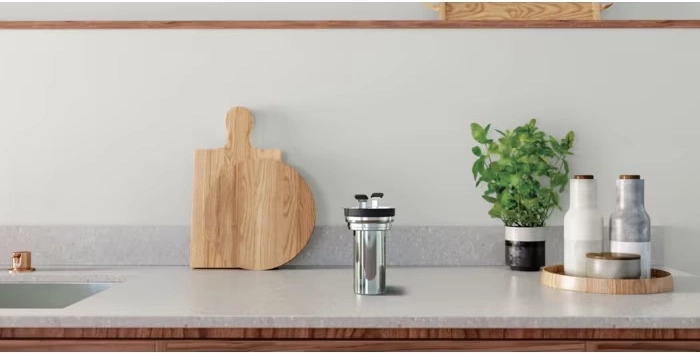 A tisztább víz és a jobb íz érdekében a készülék vízkőképződés elleni szűrővel van felszerelve. A stabil, forgatható talp érintésvezérléssel megkönnyíti a napi használatot, az elegáns dizájn pedig tökéletesen illik a modern konyhába.