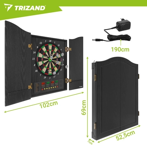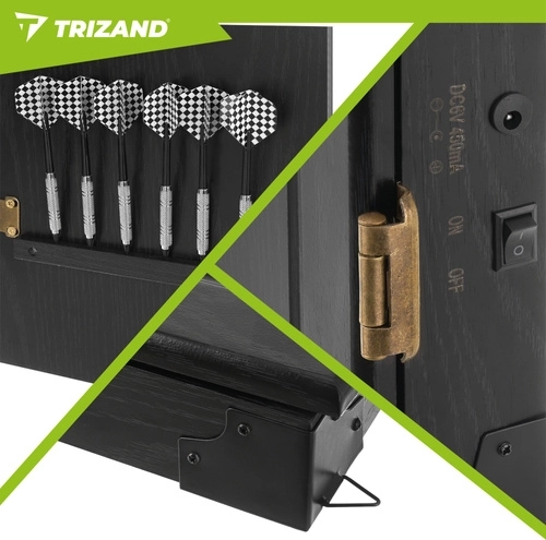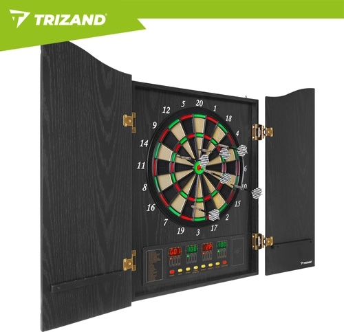 A TRIZAND elektronikus darts tábla modern otthoni szórakozást kínál családnak és barátoknak. A automatikus pontszámító egységnek, a hangerő-szabályozásnak és az áttekinthető LED kijelzőknek köszönhetően mindig kézben tarthatja az eredményeket. Az elegáns ajtós szekrény védi a táblát a portól, és jól illik nappaliba, játék- vagy irodai környezetbe.