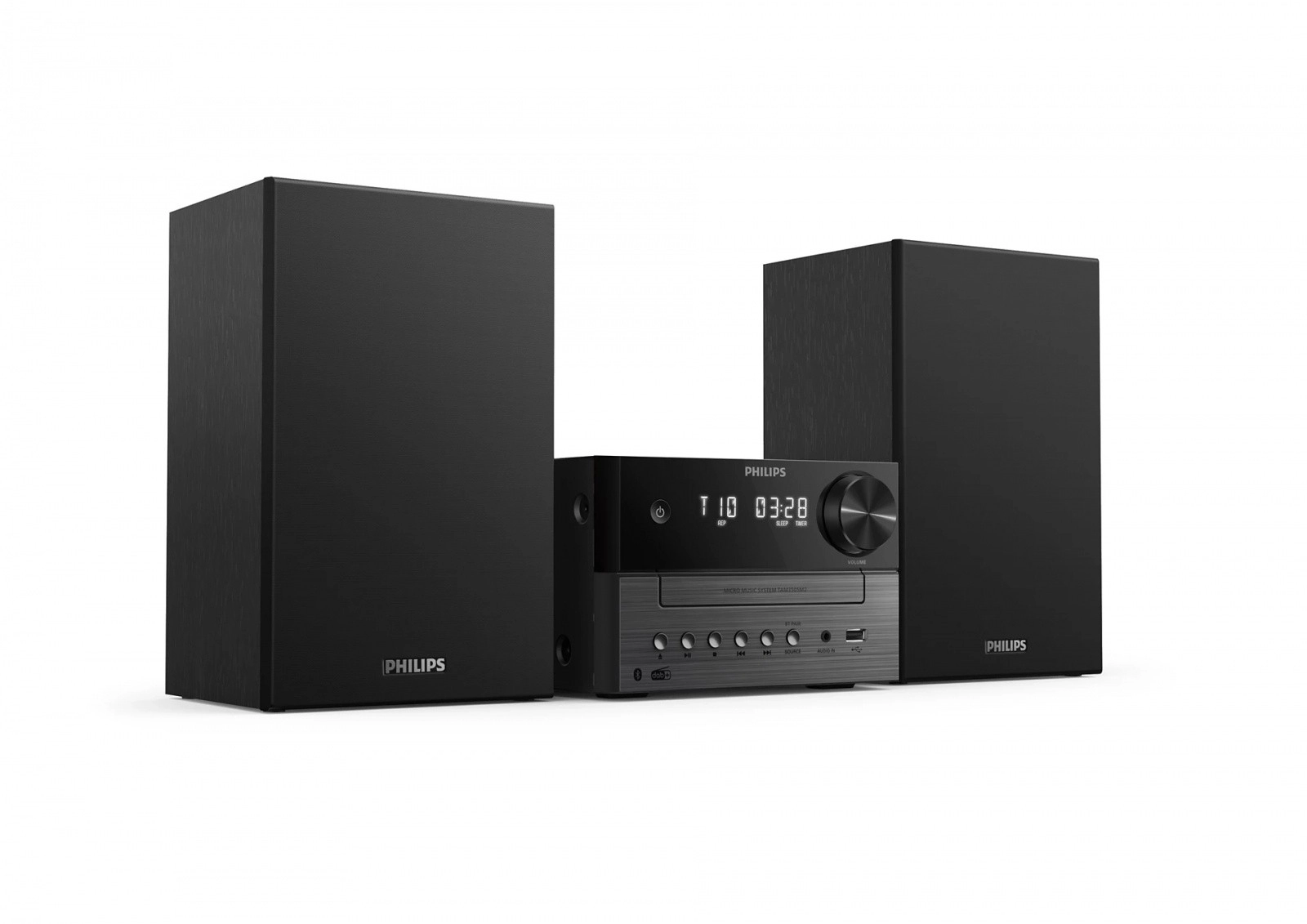 A két polcsugárzó 20 W RMS összteljesítménnyel, 3" mélysugárzókkal és bass‑reflex portokkal kiegyensúlyozott sztereó megszólalást teremt. A digitális hangvezérlés előbeállításokat kínál zenéhez, podcastokhoz és beszédhez. További forrásokat is csatlakoztathat USB-n és hangbemeneten keresztül. A kezelés egyszerű az előlapi gomboknak és a Philips Entertainment alkalmazás támogatásának köszönhetően.