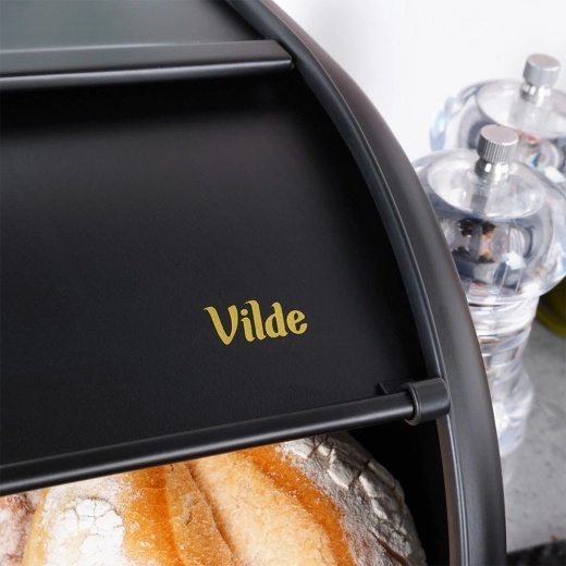 Az elegáns, fekete Vilde kenyértartó lakkozott rozsdamentes acélból készült, amely megbízhatóan védi a tartalmat a kiszáradástól és a portól. Tágas belső kialakítása elfér benne kenyér, kifli és édes péksütemény is, és tovább megőrzi azok illatát és ízét. A matt felület és a lekerekített vonalak könnyen illeszkednek modern és klasszikus konyhákhoz egyaránt.