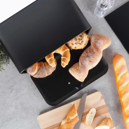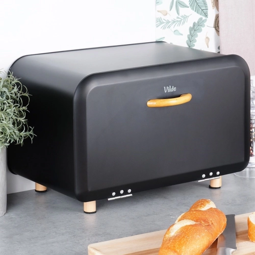 Tartsa pékáruit tovább illatosan és ropogósan. A Vilde fém kenyértartó elegáns matt fekete színben korlátozza a levegő bejutását, így segít megőrizni a frissességet és az ízt a cipóknál és a zsemléknél egyaránt. Kompakt méreteinek köszönhetően elfér a konyhapulton, mégis elegendő helyet kínál a mindennapi pékáru-készlethez.