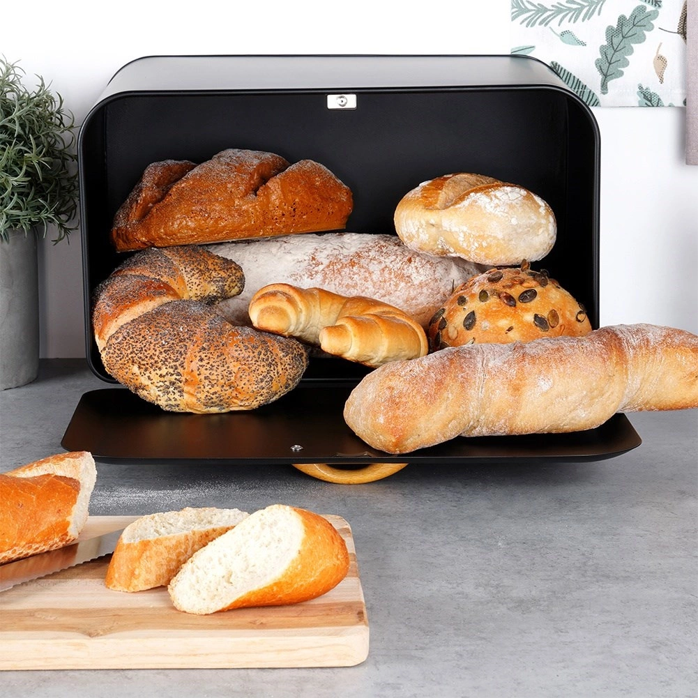A minőségi fémház korlátozott levegőhozzáféréssel segít a kenyeret, zsemlét és édes péksüteményeket tovább puhán és ízletesen tartani.