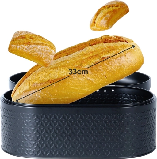 Tartsa tovább frissen és ízletesen a pékárut a jól záródó fedélnek köszönhetően, amely korlátozza a levegő bejutását. A kenyértartó tartós szénacélból készült fekete, porfestett felülettel és finom, kalapácsolt hatású textúrával. Kenyérhez, zsemléhez, bagetthez és édes péksüteményhez egyaránt ideális, és könnyedén illeszkedik modern és klasszikus konyhákba is.