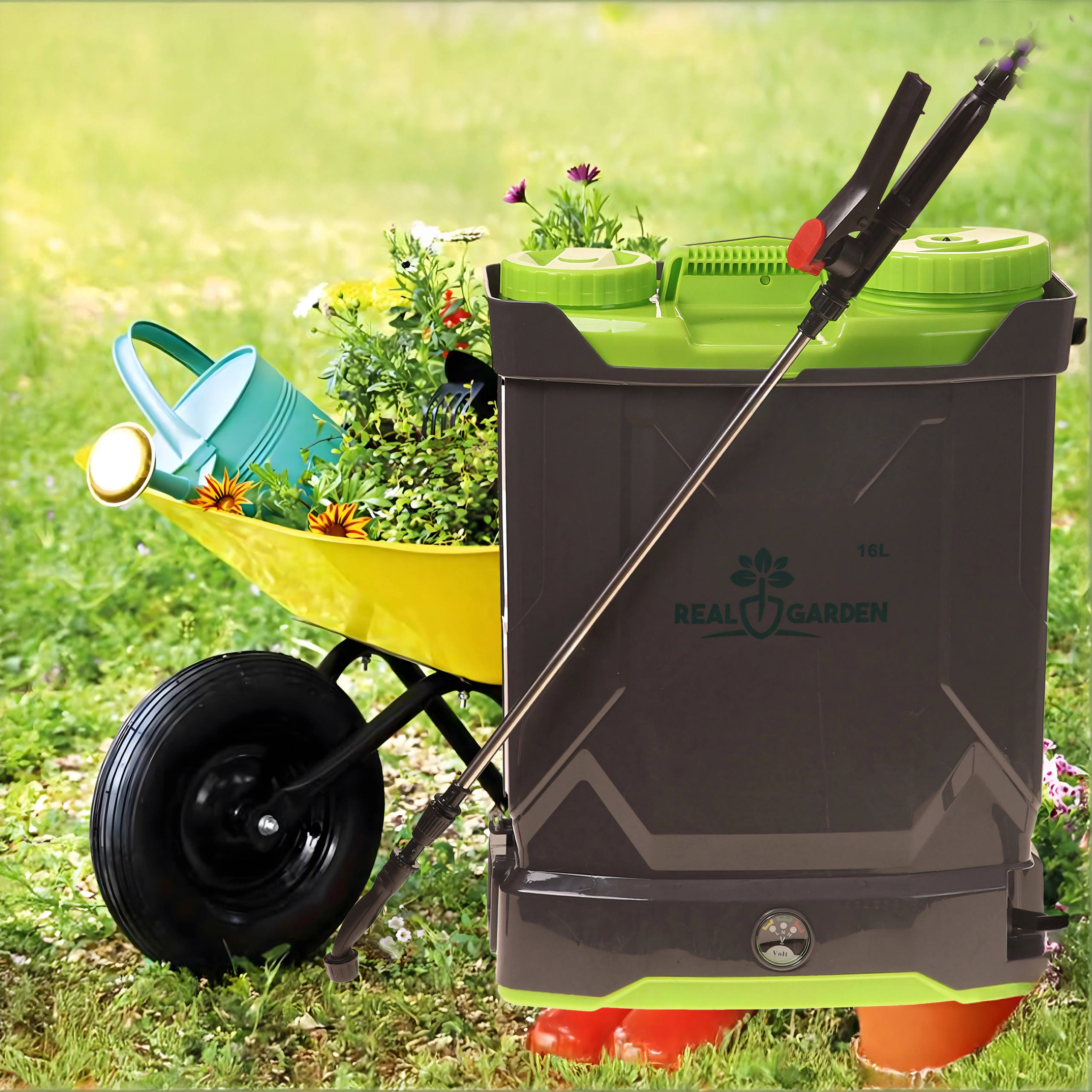 A 16 literes akkumulátoros kerti permetező ideális választás öntözéshez, tápoldatozáshoz és növényvédelemhez a kertben, szőlőültetvényben vagy gyümölcsösben. Az integrált elektromos szivattyú állandó nyomást és finom, egyenletes szórást biztosít, így időt és energiát takarít meg. Az ergonomikus pántoknak és a háti kialakításnak köszönhetően teljes tartállyal is kényelmesen viselhető.