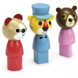 A fa és a színpompás alakú figurák növelik a gyermekek finommotorikai készségeit és ösztönzik a kreativitást.