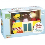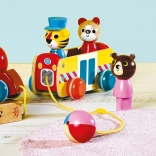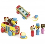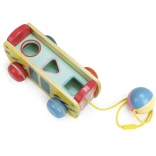 Ez a húzható busz minőségi fából készült, és nemcsak szórakozást, de kihívást is nyújt a kis gondolkodóknak. A színpompás színek és az állatok, amelyek beilleszthetők és kivehetők, több területen is támogatják a gyermekek fejlődését: