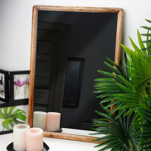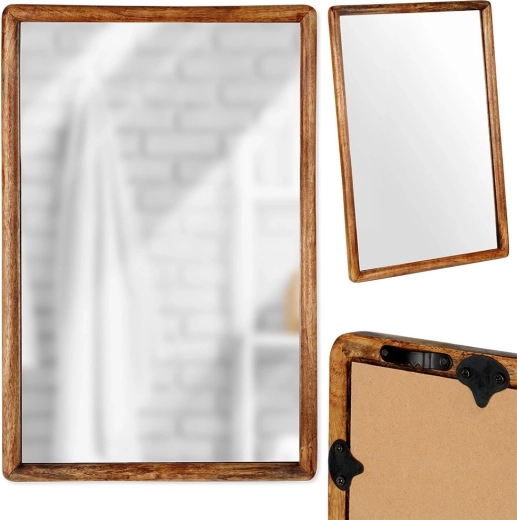 Elegáns falitükör 40 × 60 cm méretben, természetes mangófából készült fa kerettel, amely stílust és fényt visz az enteriőrbe. Függőlegesen és vízszintesen is felakasztható, tökéletes nappaliba, előszobába és hálószobába. Tiszta és világos tükröződést kínál, és praktikus, egyben dekoratív kiegészítője lesz bármely térnek.