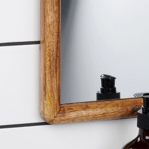 Ez a letisztult dizájnú tükör természetes faárnyalatban remekül illik modern és klasszikus enteriőrökhöz egyaránt. A minőségi mangófa keret kiemeli a természetes erezetet, meleget és időtlen eleganciát visz a helyiségbe. A pontos tükröződés kényelmes mindennapi használatot biztosít.