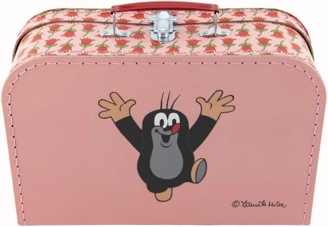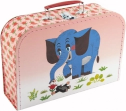 Gyermekbőrönd kedvelt karakterek, vakond és elefánt illusztrációjával ideális kis utazóknak és kíváncsi gyermekeknek. Méretei 30x21x9,5 cm elegendő teret biztosítanak különféle játékok vagy személyes tárgyak számára. Papír- vagy kartonalapú anyagból készült, könnyű és könnyen hordozható a praktikus fém fogantyúnak köszönhetően. Kiváló dekoratív tárolási megoldás is a gyerekszobában.