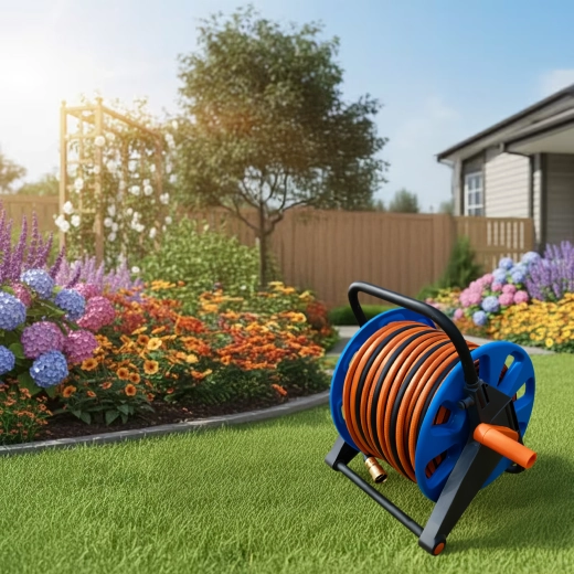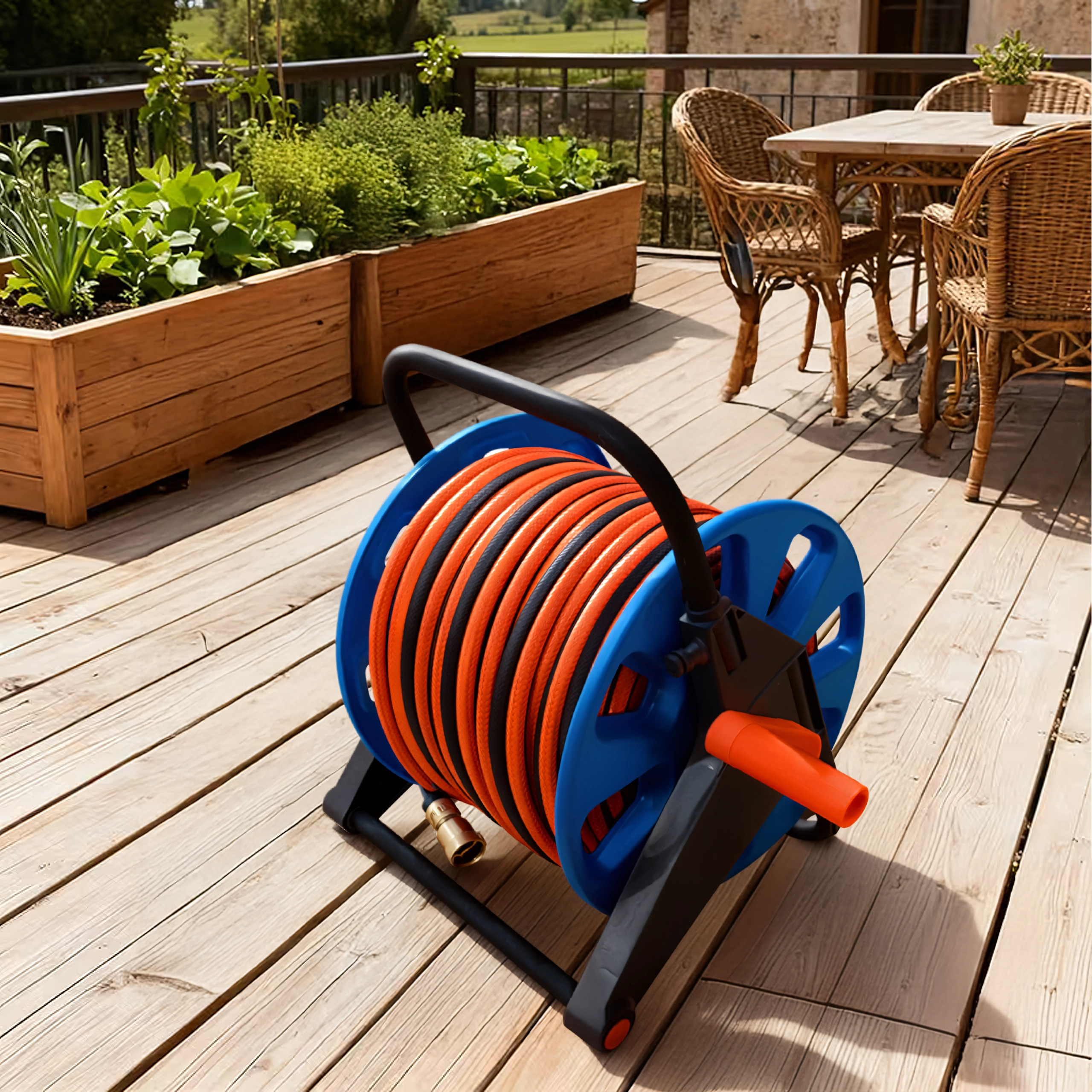 Akár 50–60 méter szabványos kerti tömlő kapacitásával a nagyobb telkek igényeit is lefedi. A kompakt méretek és az alacsony tömeg megkönnyítik a hordozást és a tárolást a garázsban vagy a kerti házban. Praktikus választás mindennapi használatra a kertben, teraszon és a műhelyben.