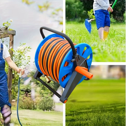 A praktikus, gördíthető tömlőcsévélő mindig rendezetten és használatra készen tartja kerti tömlőjét. Könnyű felépítésének és kényelmes hajtókarjának köszönhetően a fel- és letekerés, valamint a hordozás is egyszerű. Akár 50–60 m tömlő is elfér rajta, így ideális kertbe, udvarra és műhelybe. Nincs több csomó és rendetlenség – csak gyors feltekerés, tiszta tárolás és könnyű kezelés.