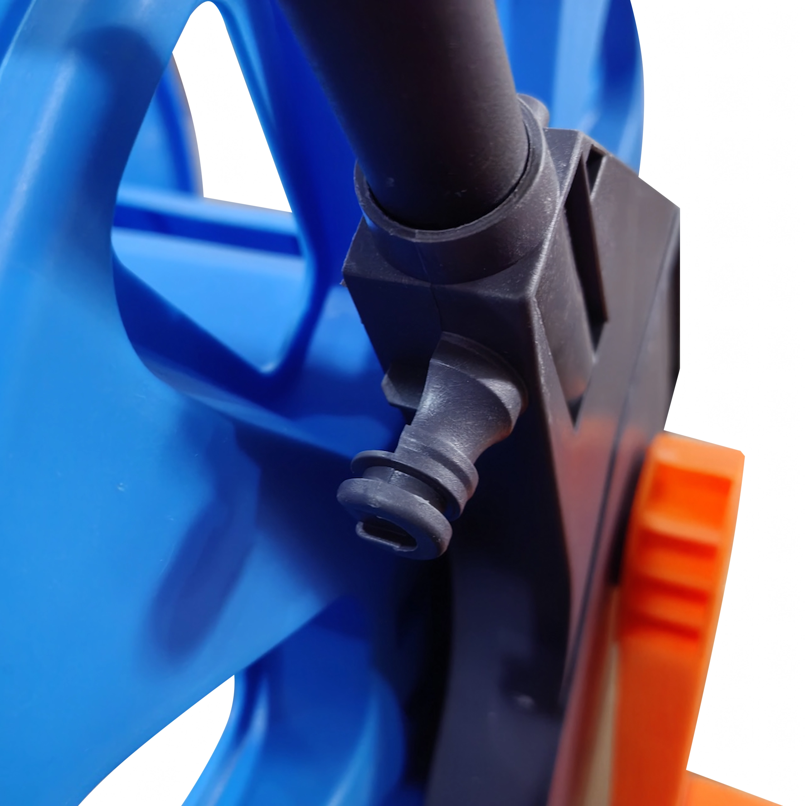 - Könnyű feltekerés – sima kézi hajtókar a tömlő gyors felhúzásához.