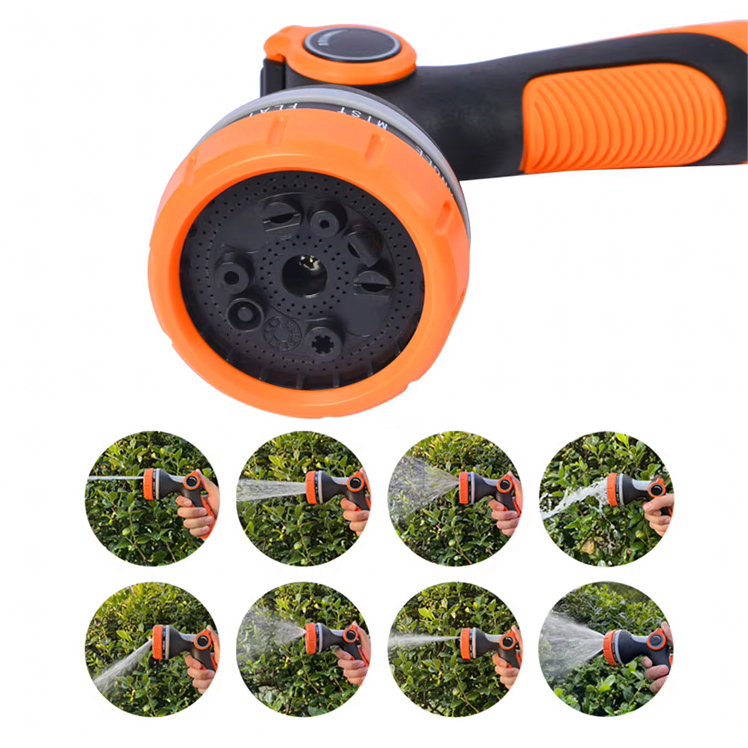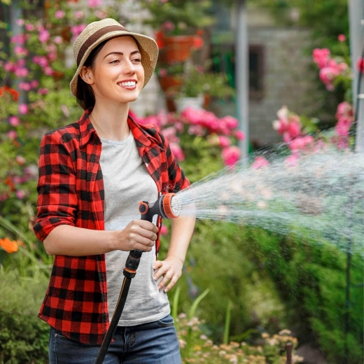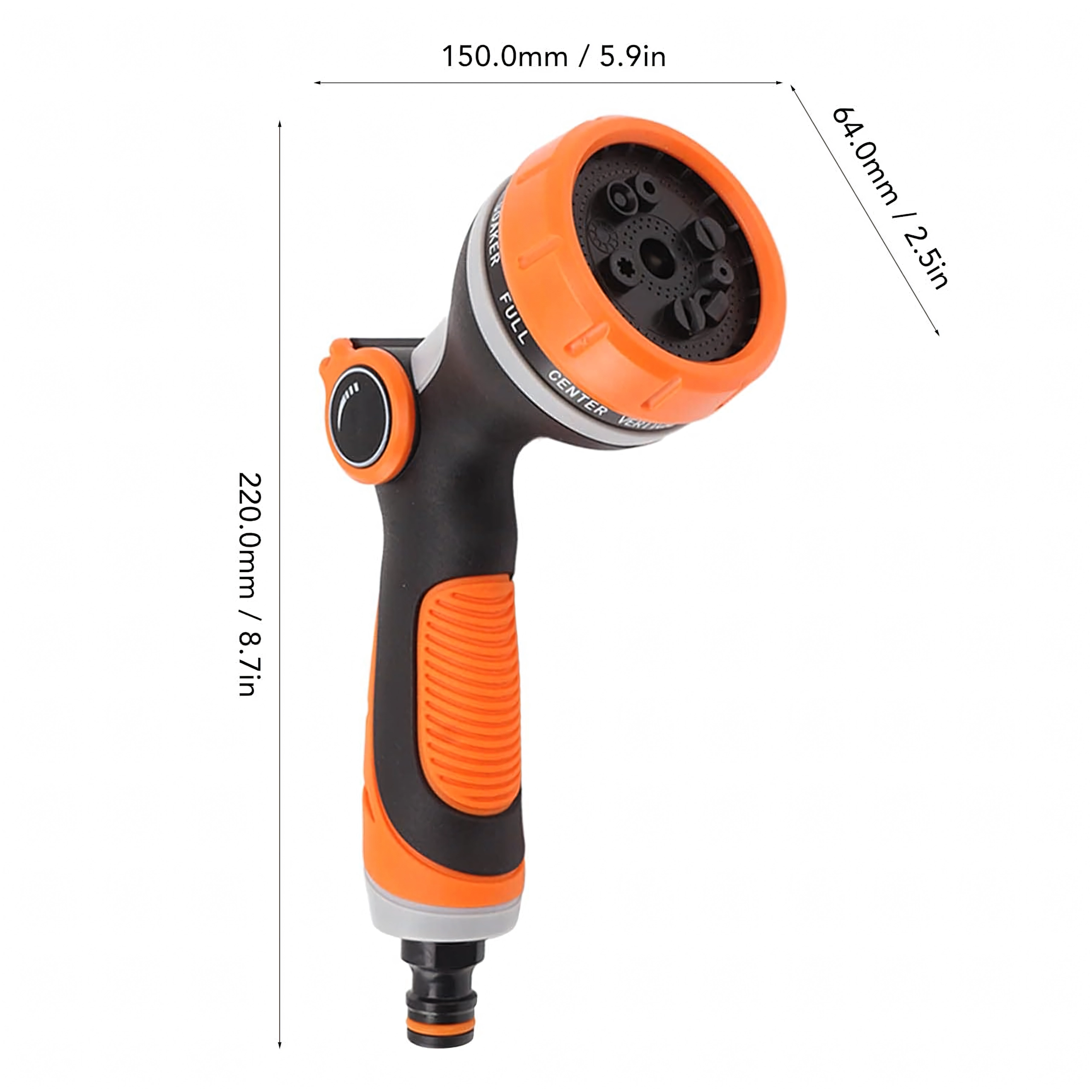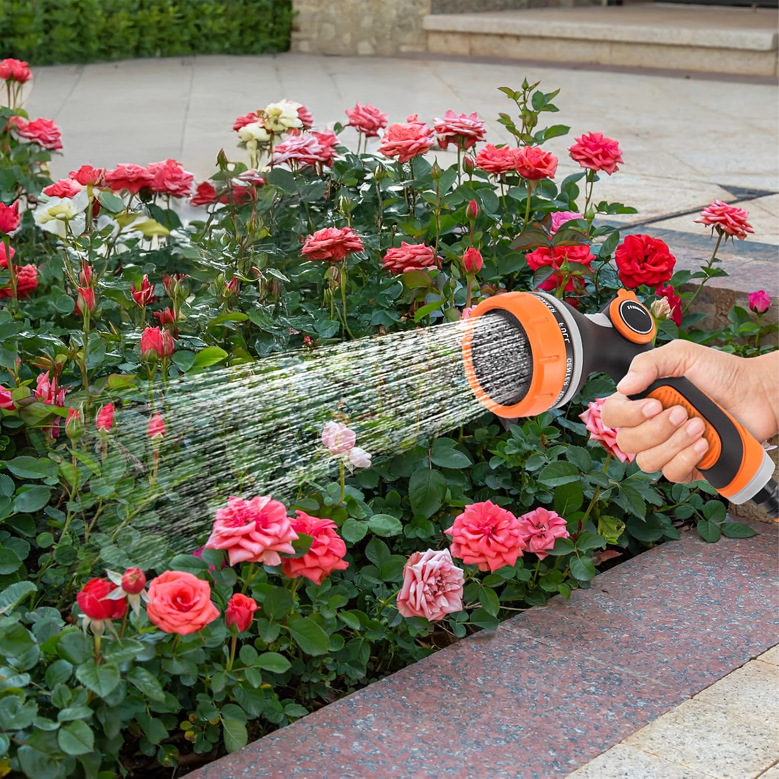 Többféle szórásmód közül választhat (pl. mist/permet, full/teljes, center/középpont, vertical/függőleges, cone/kúp, jet/sugár), így kíméletesen öntözheti a virágokat, gyorsan leöblítheti a teraszt, vagy lemoshatja a kerékpárt és az autót. A fej szabványos gyorscsatlakozóval kompatibilis, ezért a legtöbb tömlőhöz könnyen csatlakoztatható.